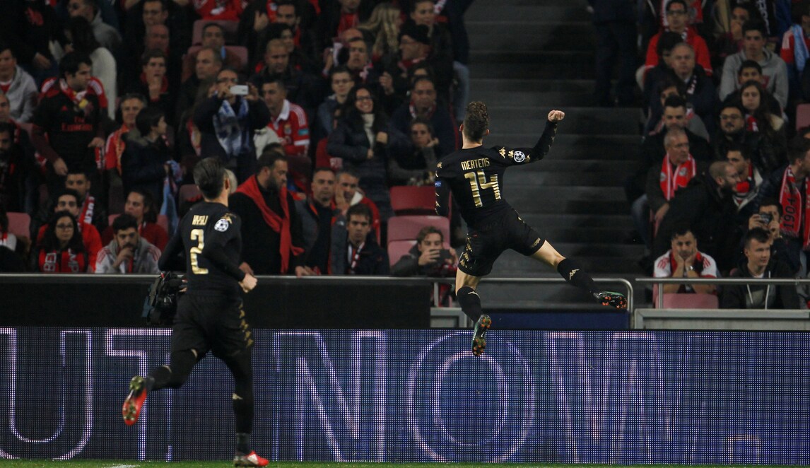 Gli azzurri vincono al Da Luz grazie alle reti di Callejon e Mertens. Inutile la rete di Jimenez nel finale