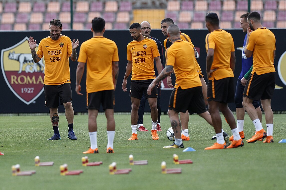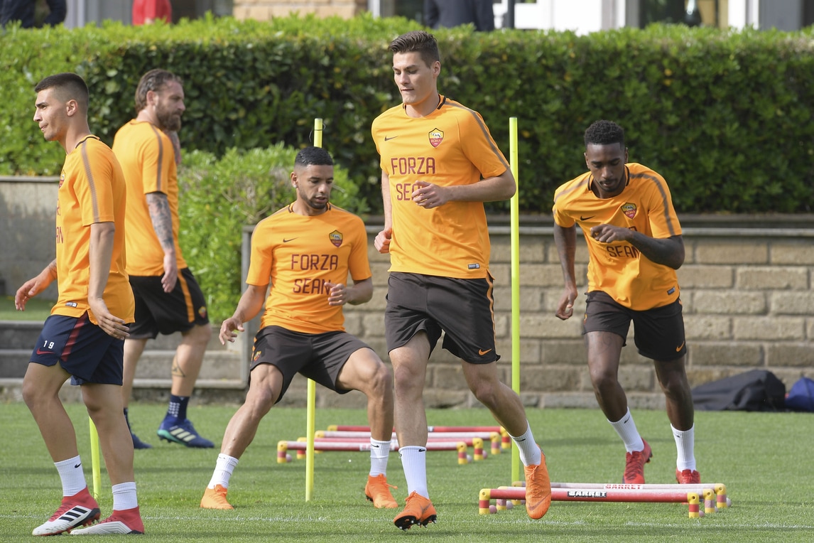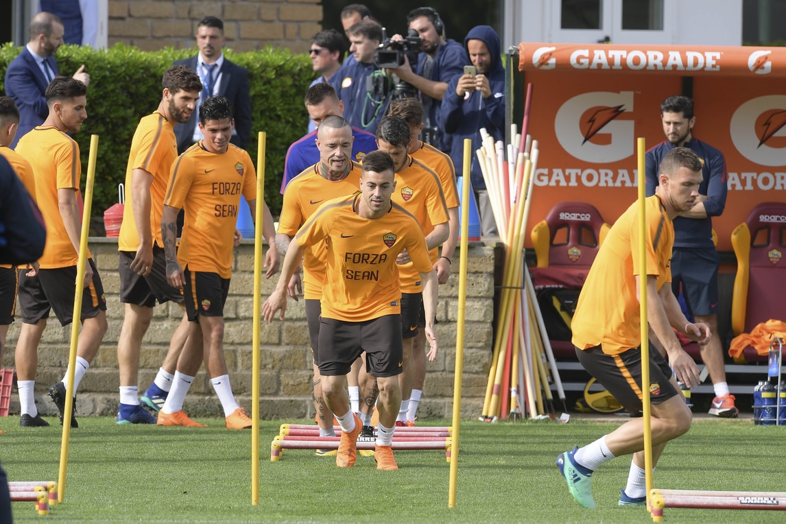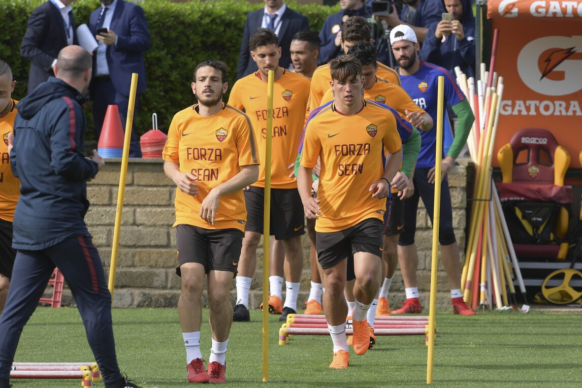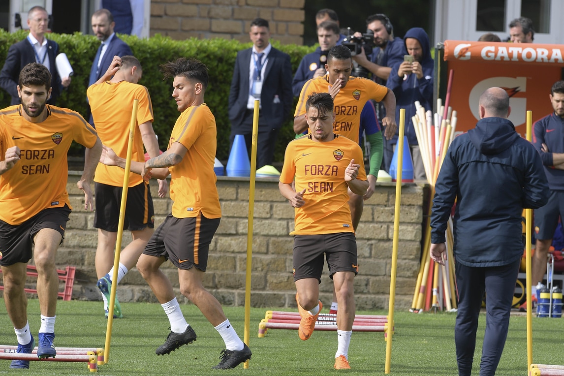 Squadra in campo a Trigoria per la rifinitura, messaggio per il tifoso del Liverpool ferito