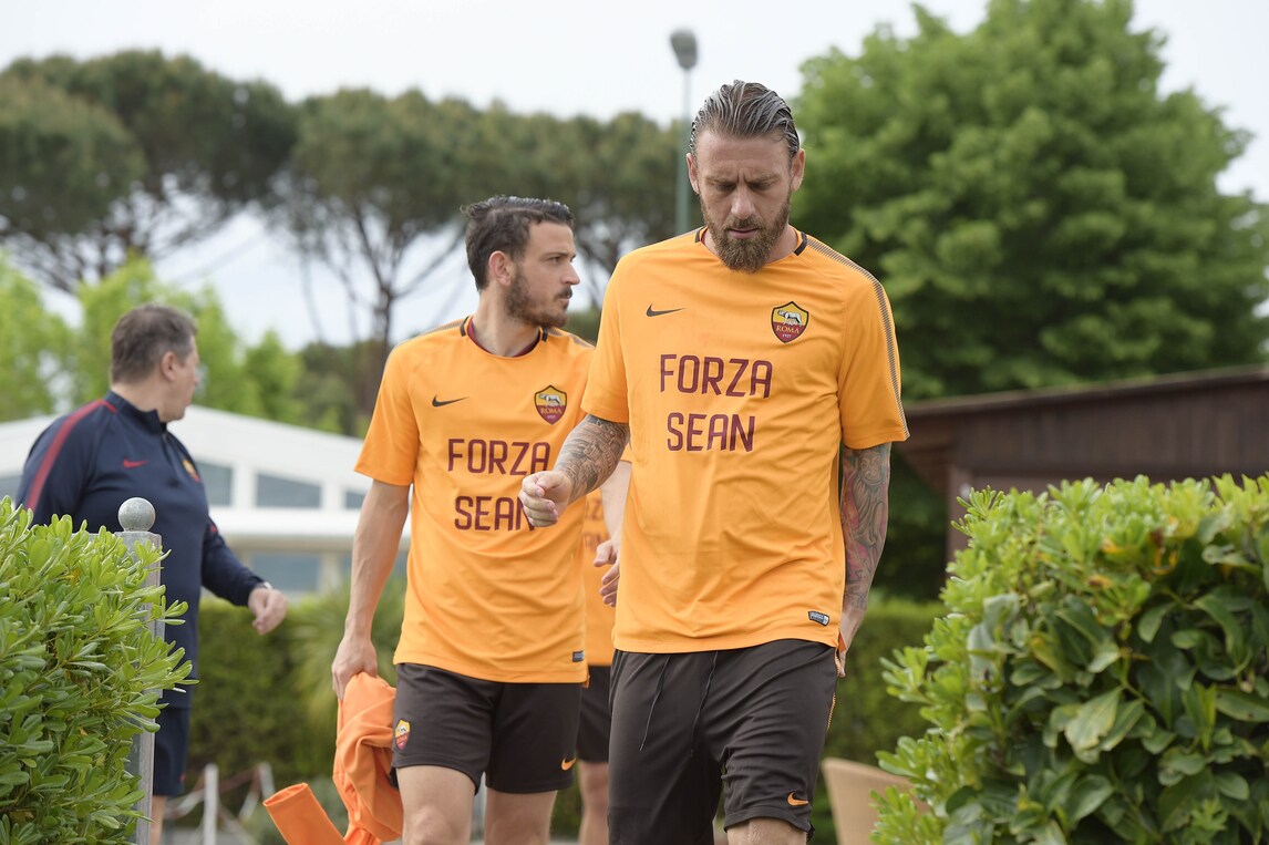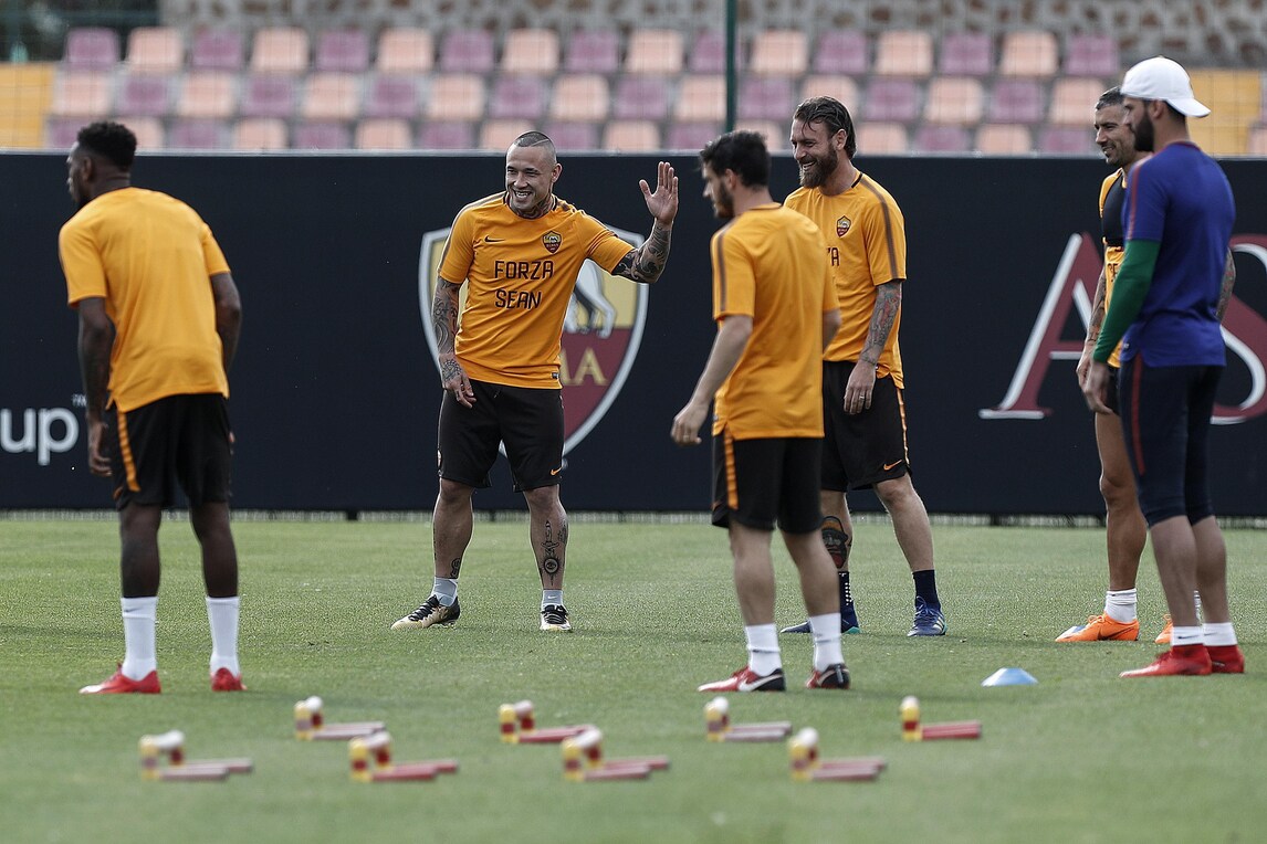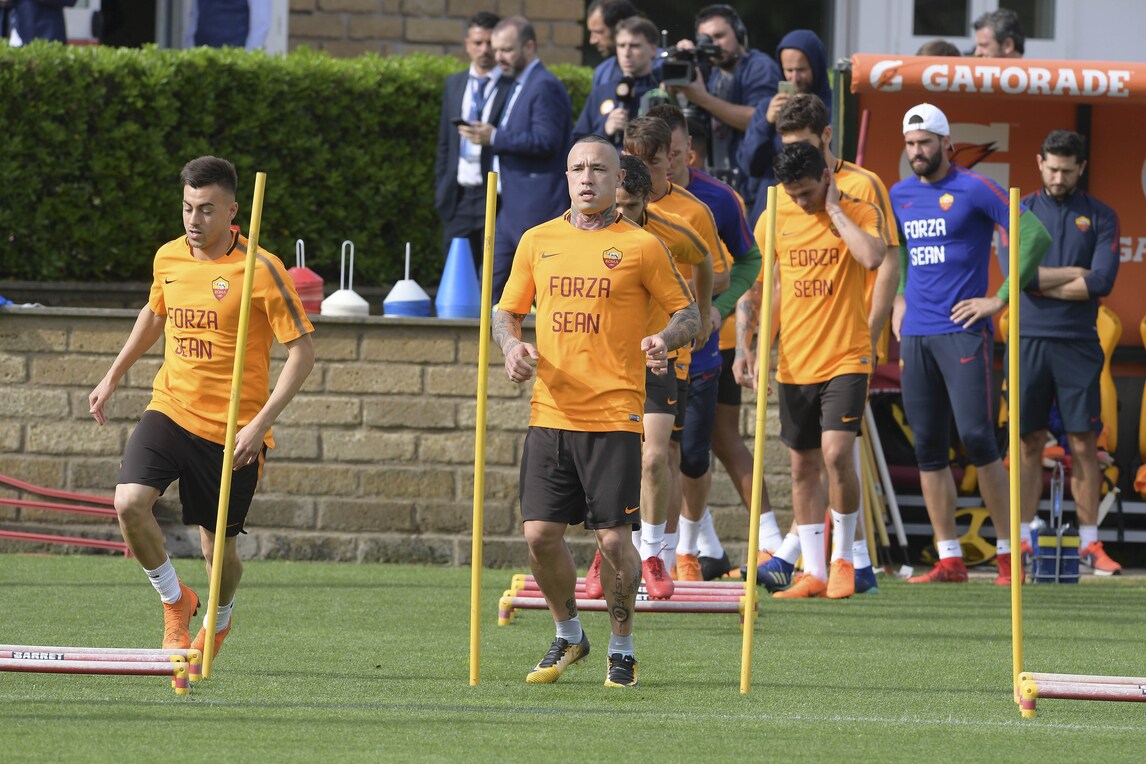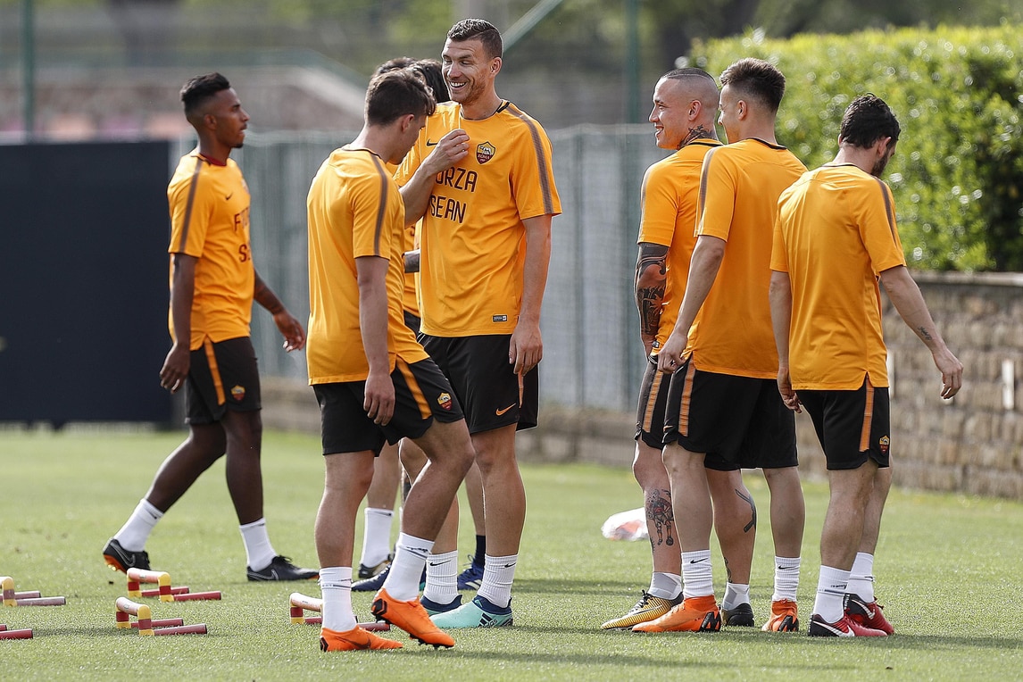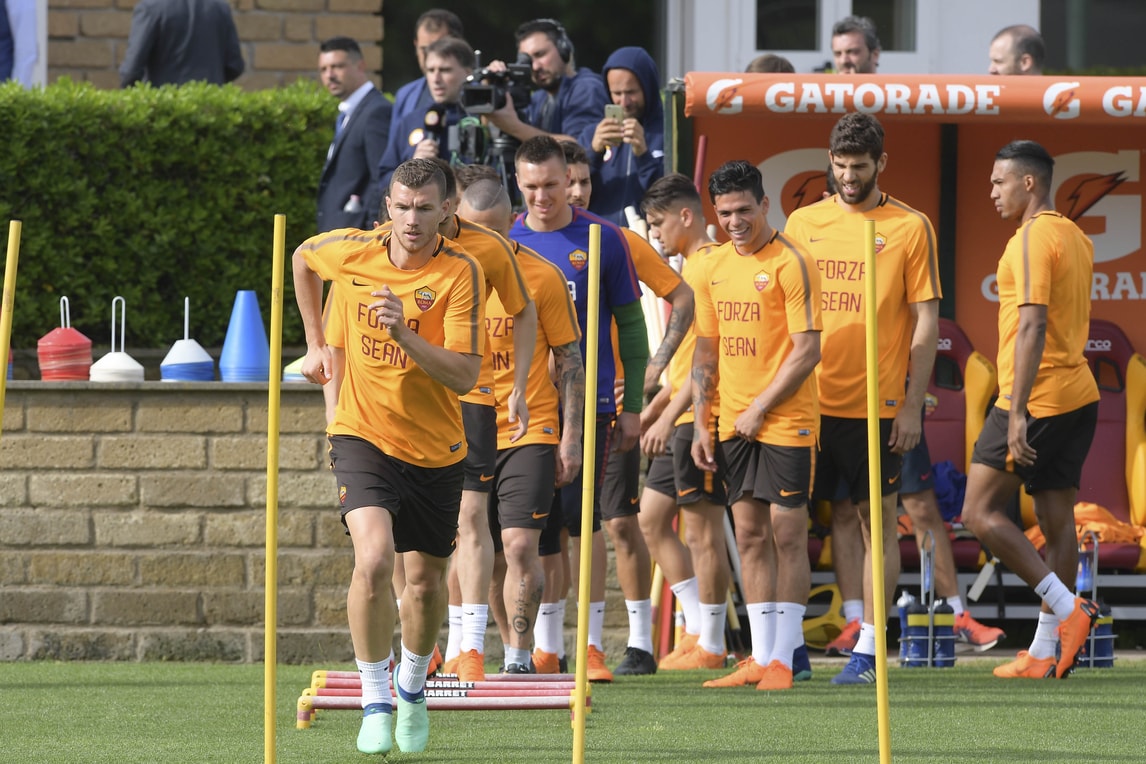 Squadra in campo a Trigoria per la rifinitura, messaggio per il tifoso del Liverpool ferito