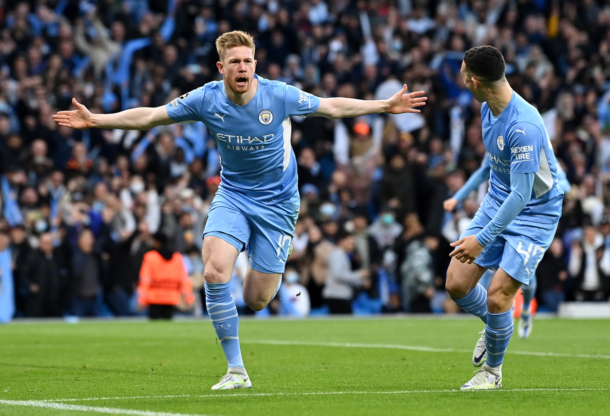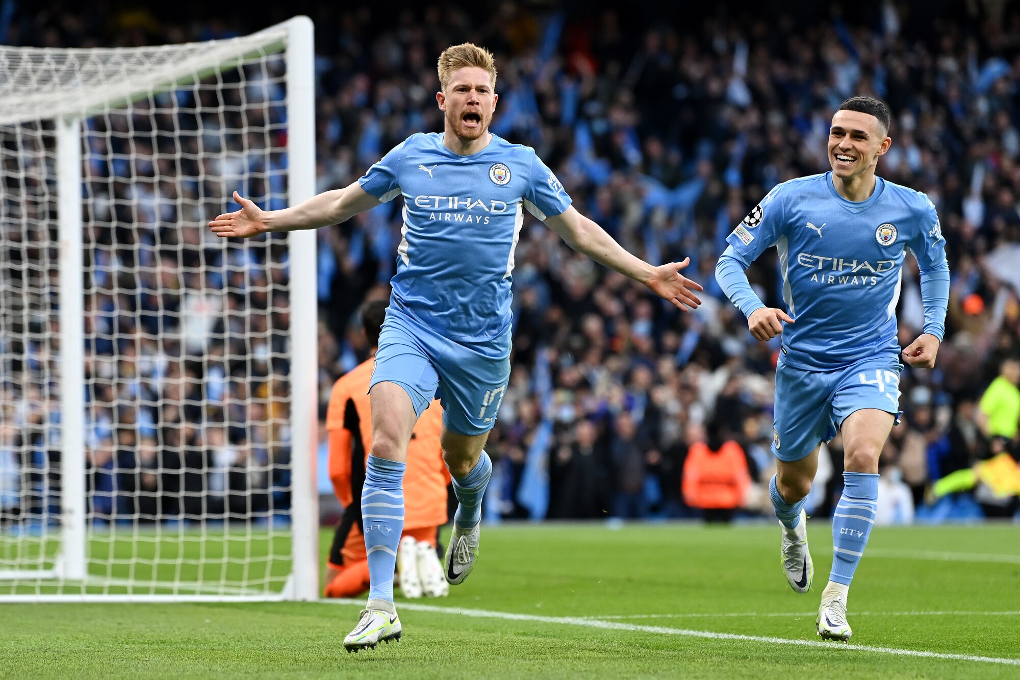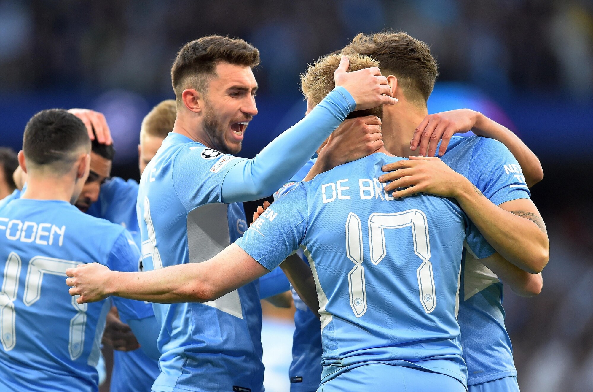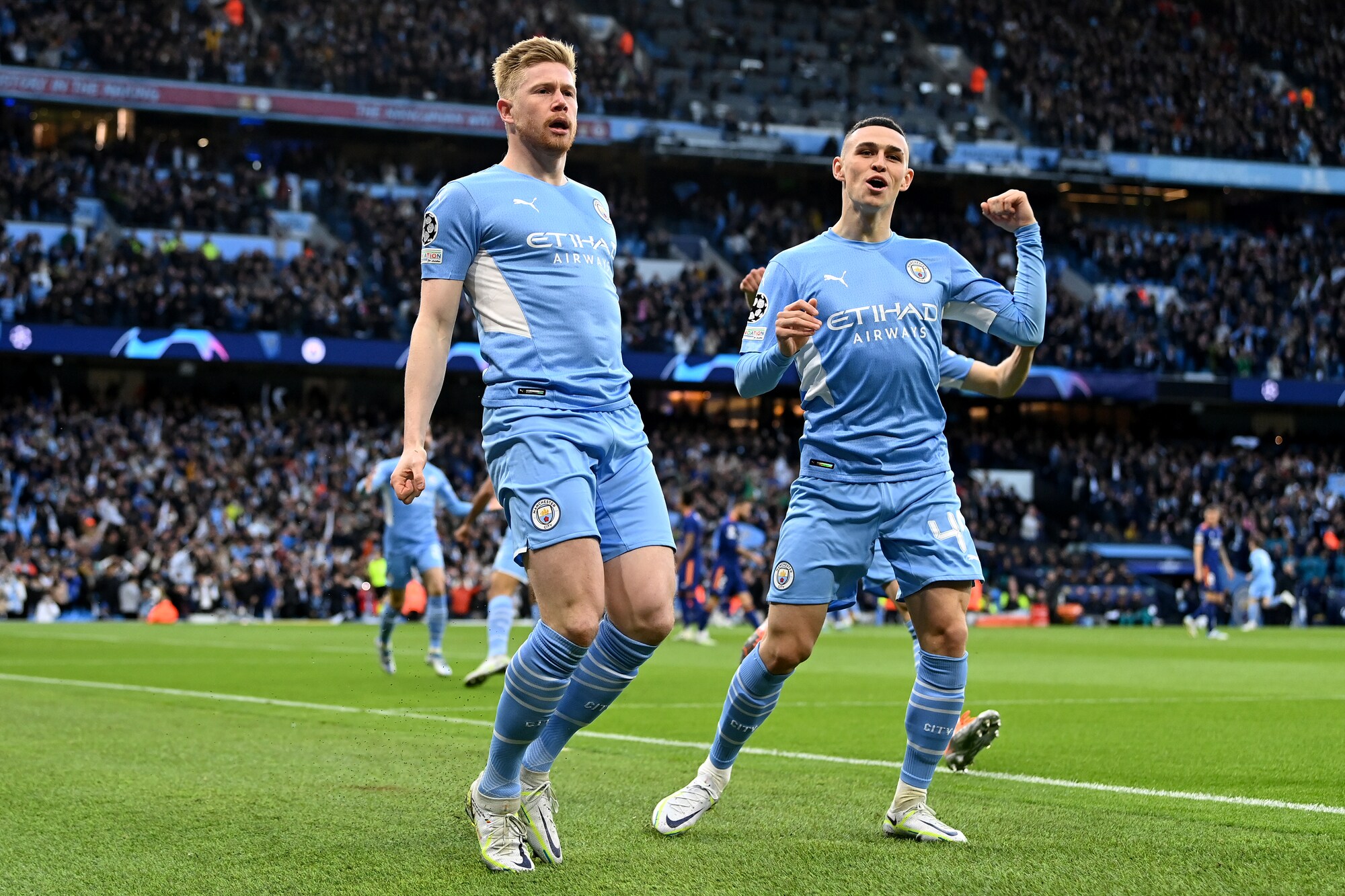 Gli inglesi superano 4-3 in Champions la squadra di Ancelotti, tenuta in vita da due magnifici gol del francese: a segno anche De Bruyne, Jesus, Foden, Silva e Vinicius