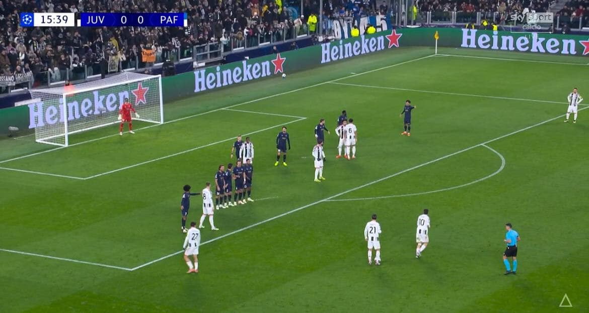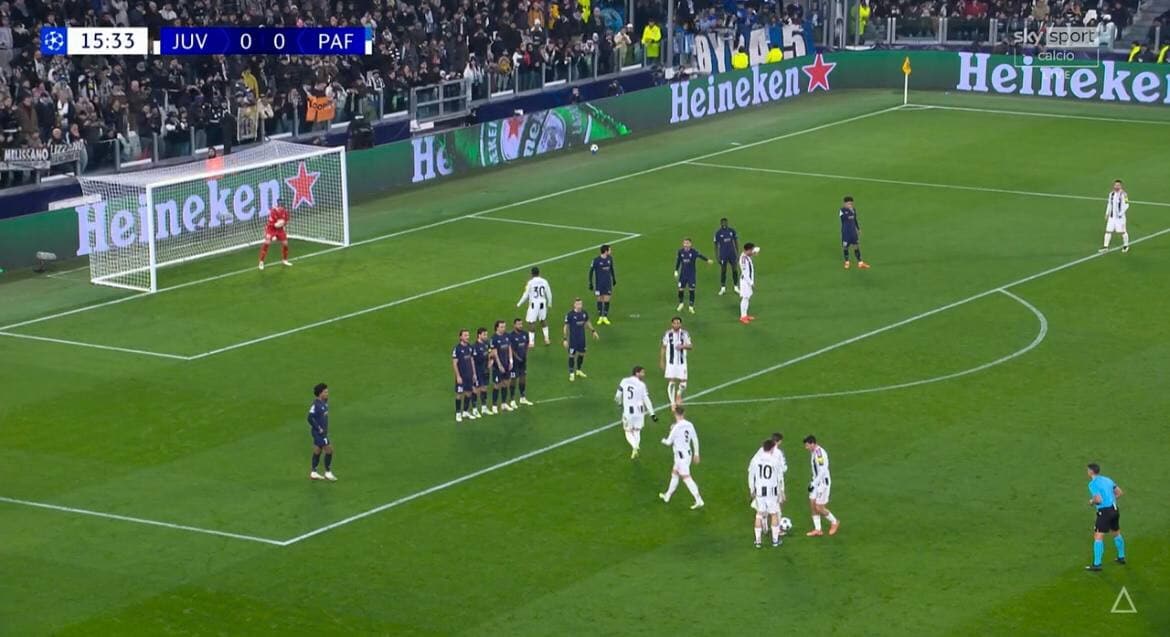 Schema horror di Miretti su punizione in Juve-Pafos, tifosi furiosi sui social: la fotosequenza