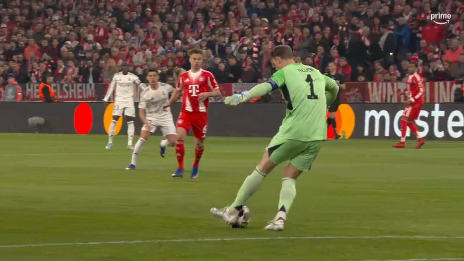 Svarione del portiere del Bayern Monaco all'Allianz Arena nel ritorno dei quarti di finale di Champions League: Blancos in vantaggio con un tiro dalla distanza del fantasista turco
