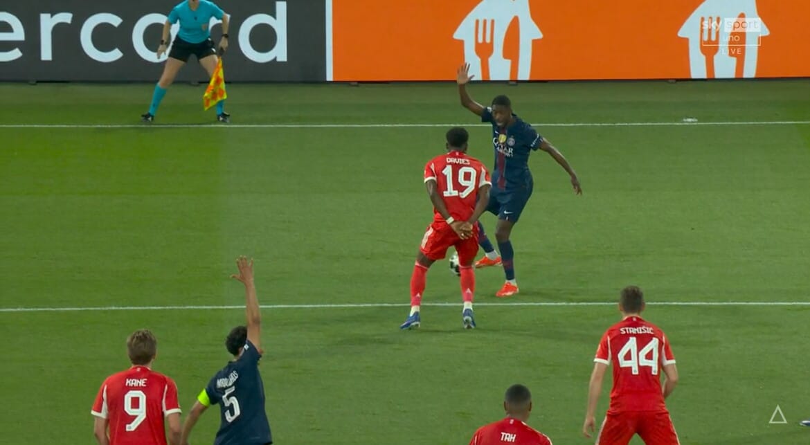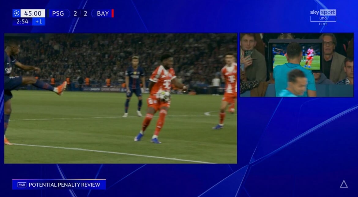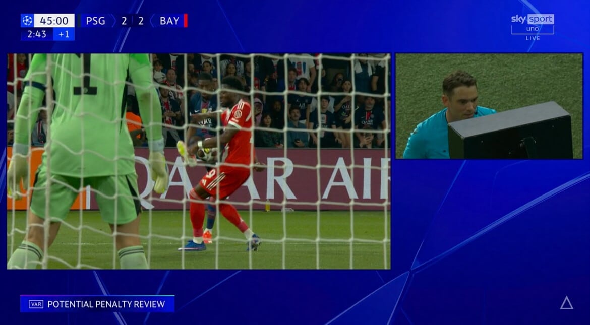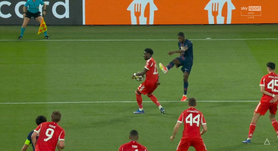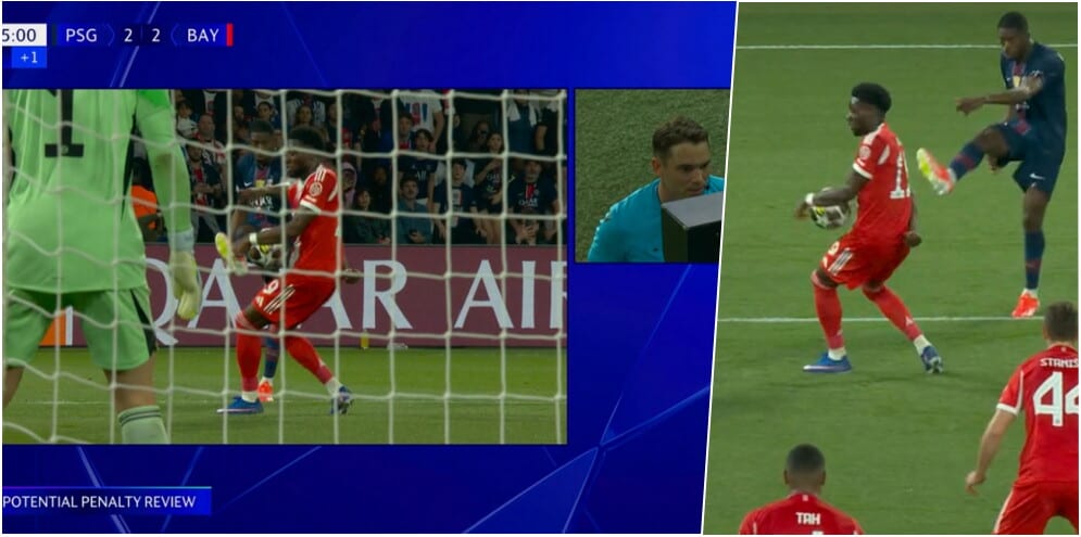 Fallo di mano di Davies sul cross di Dembelé, Var e rigore per il Psg: la fotosequenza