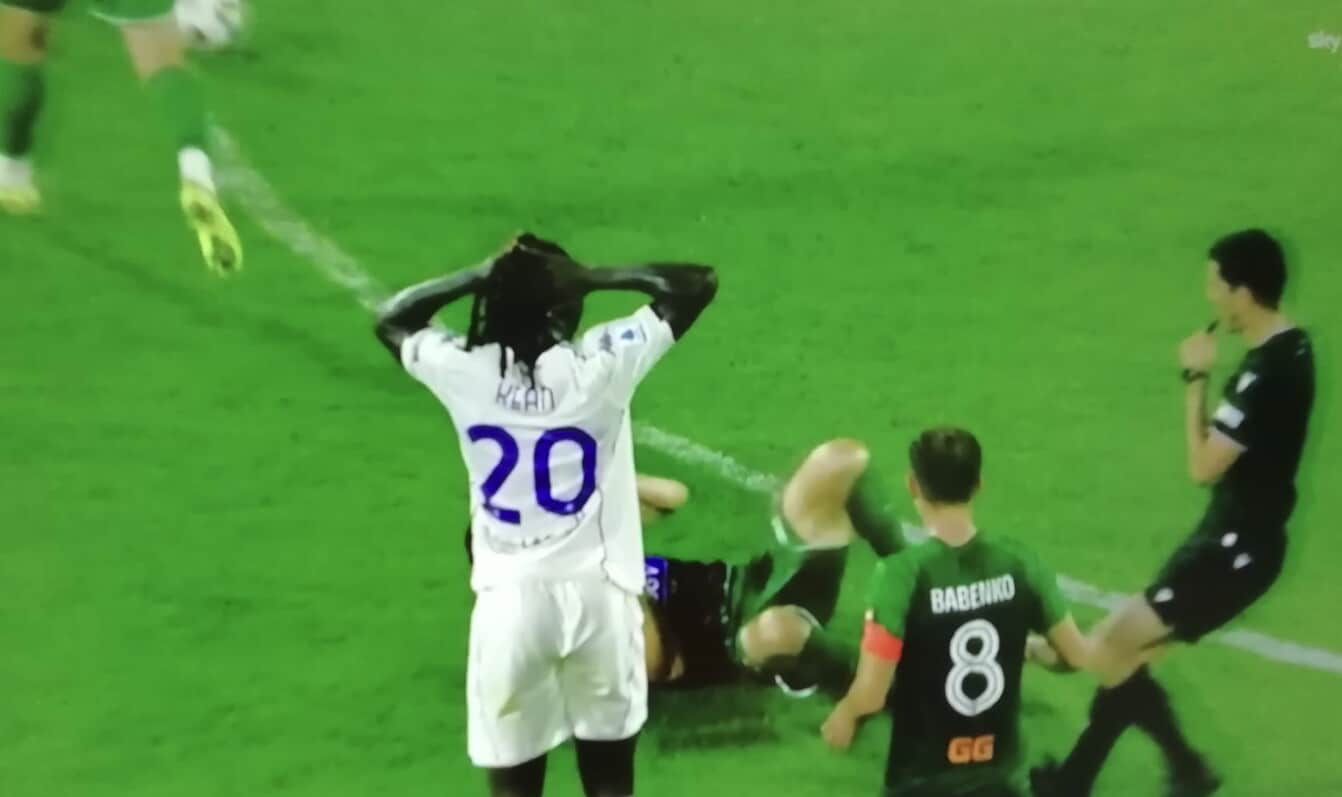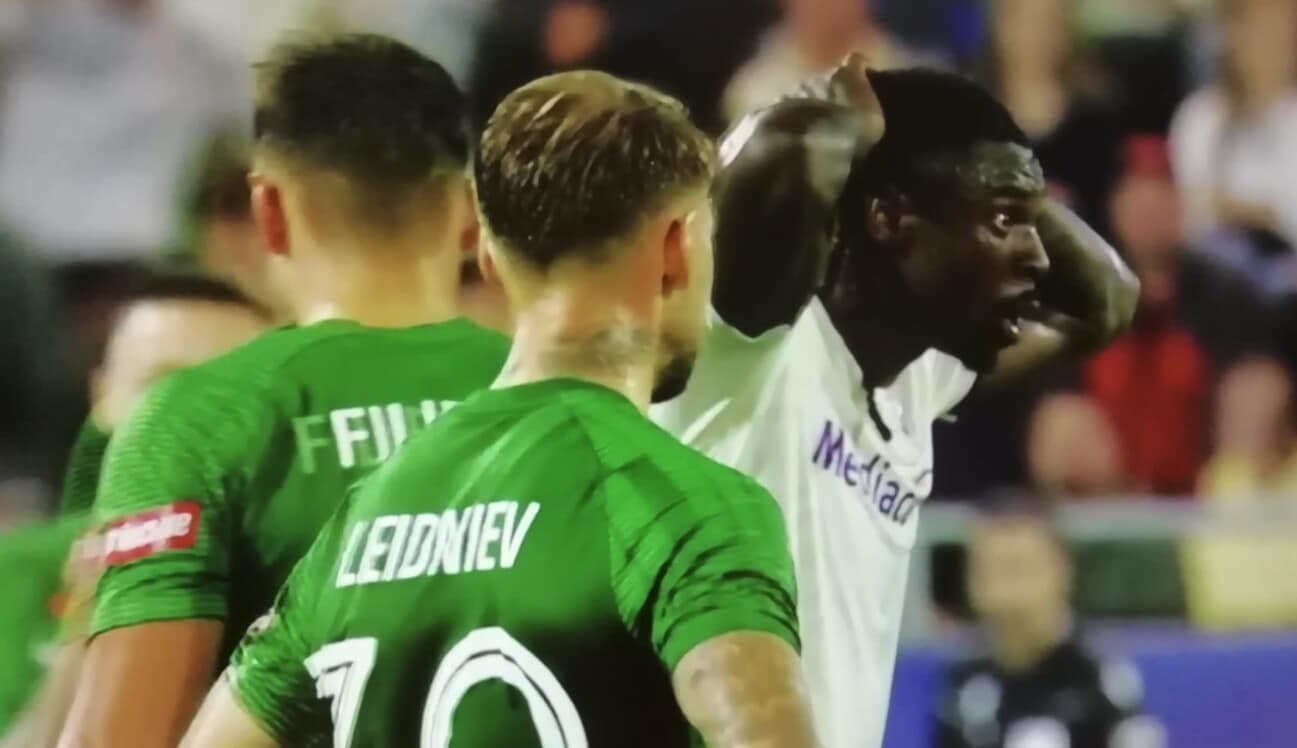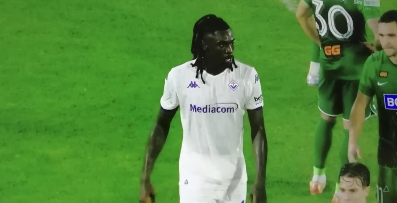 Fiorentina, l'espulsione di Kean contro il Polissya: prima la tirata di capelli e poi la gomitata