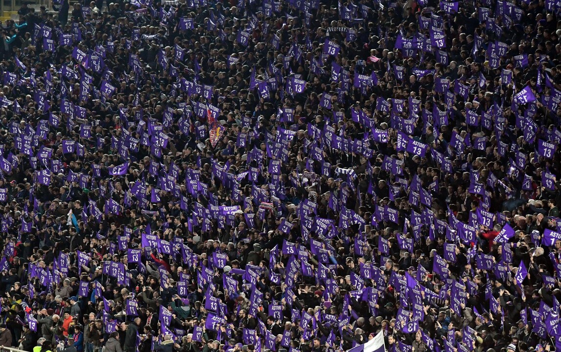 Ad inizio partita la tifoseria toscana ha voluto ricordare il compianto capitano: 15mila bandierine viola, con il nome e numero. Ecco le foto più belle