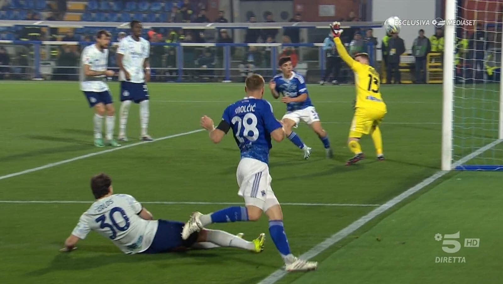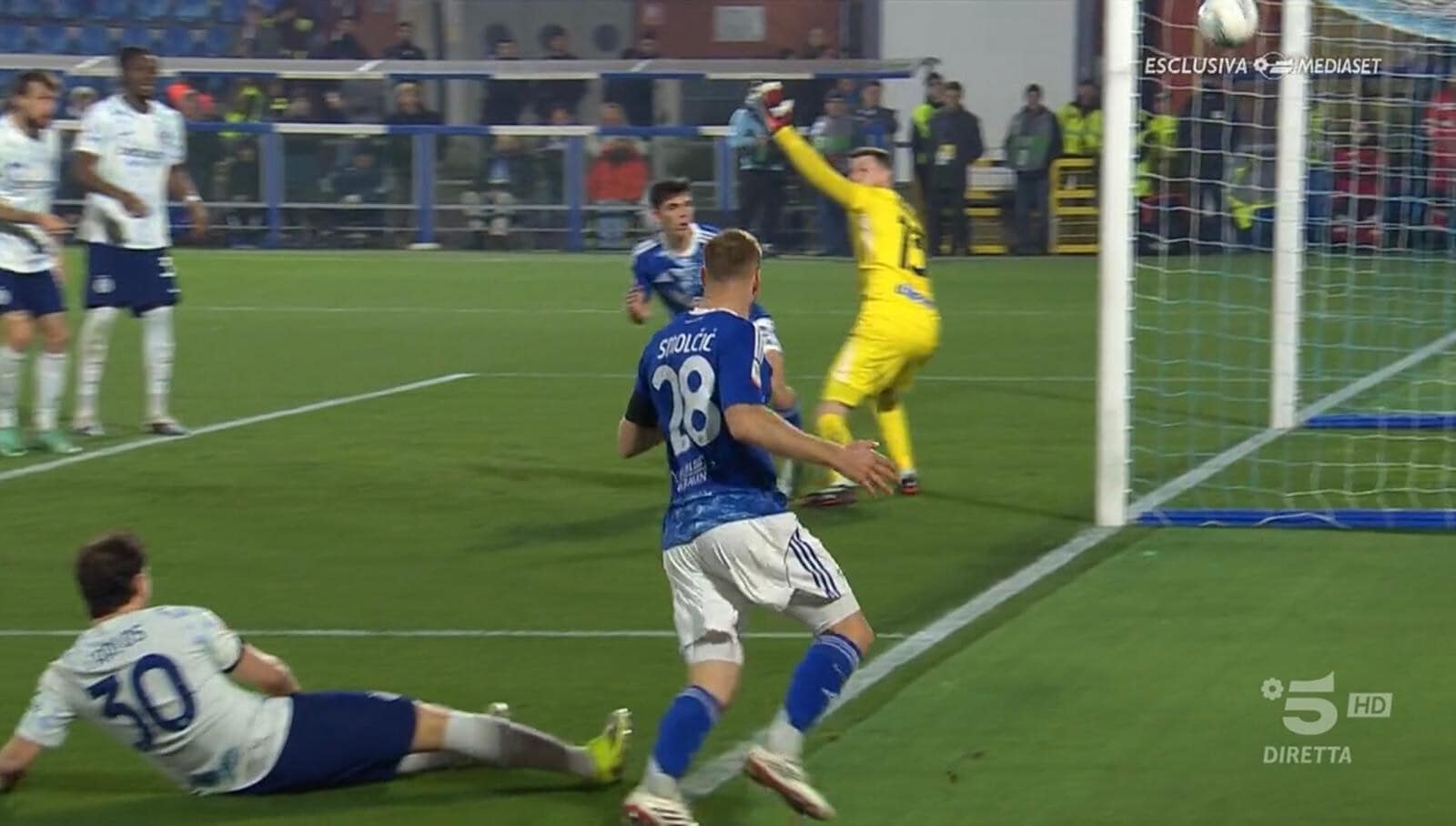 Errore clamoroso di Alex Valle in Como-Inter: sbaglia da solo a porta vuota! La sequenza