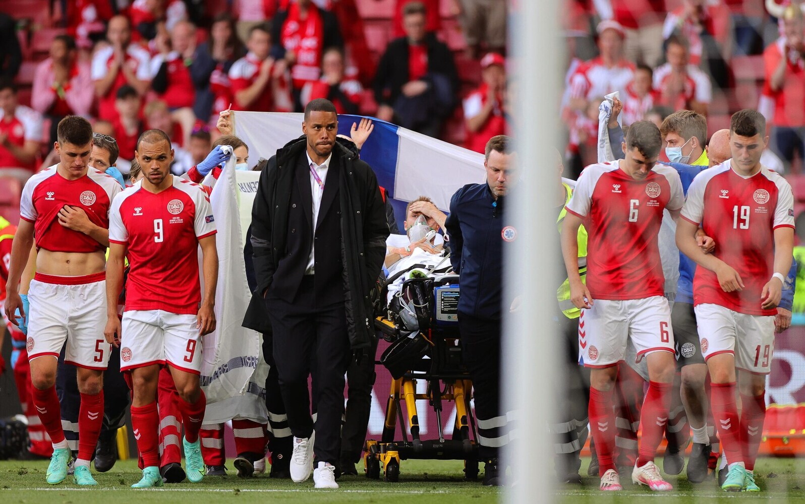 Malore per Eriksen, la moglie in lacrime mentre i compagni lo scortano