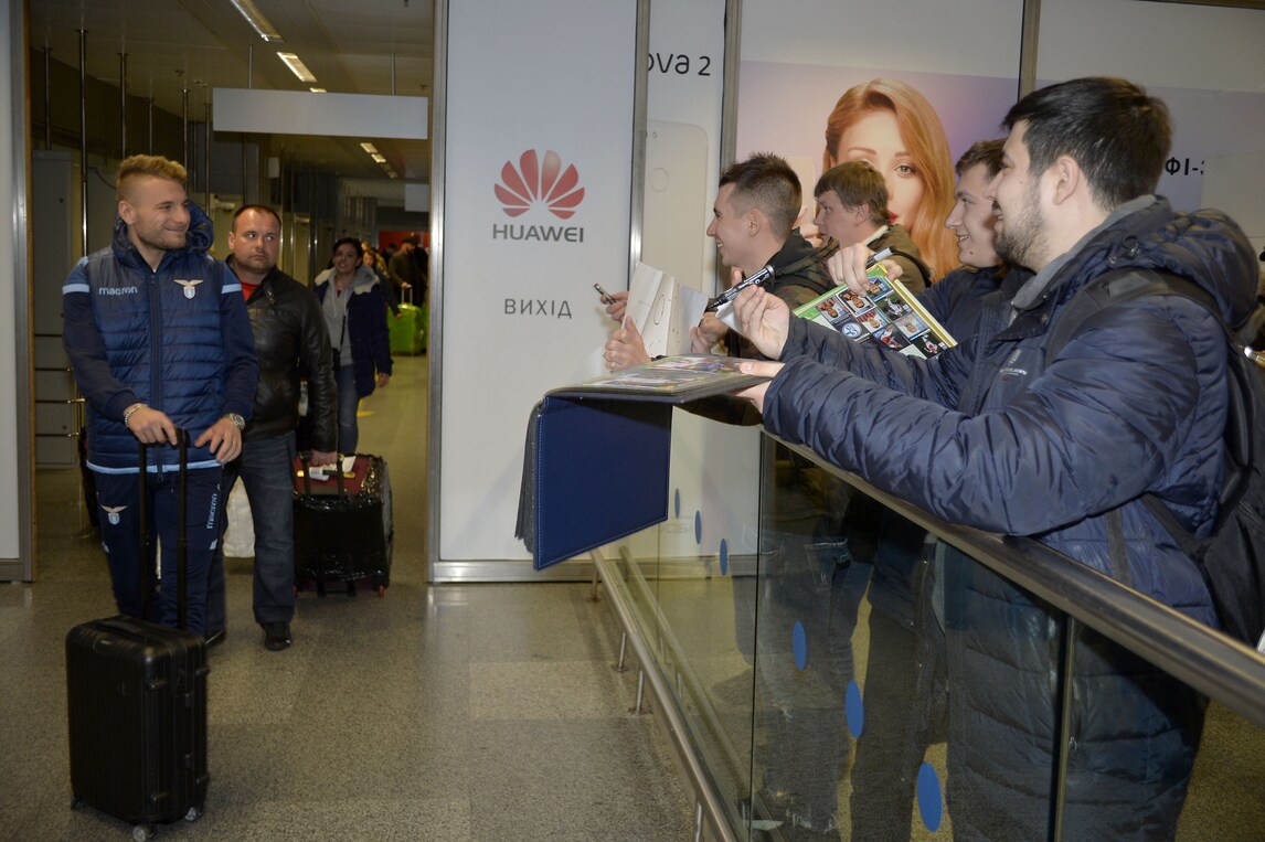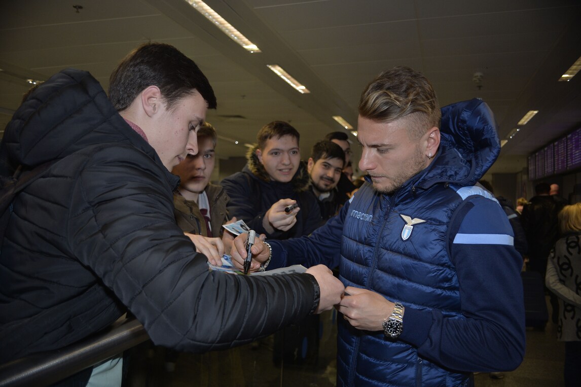 Ciro Immobile il più conteso dai tanti tifosi all'aeroporto