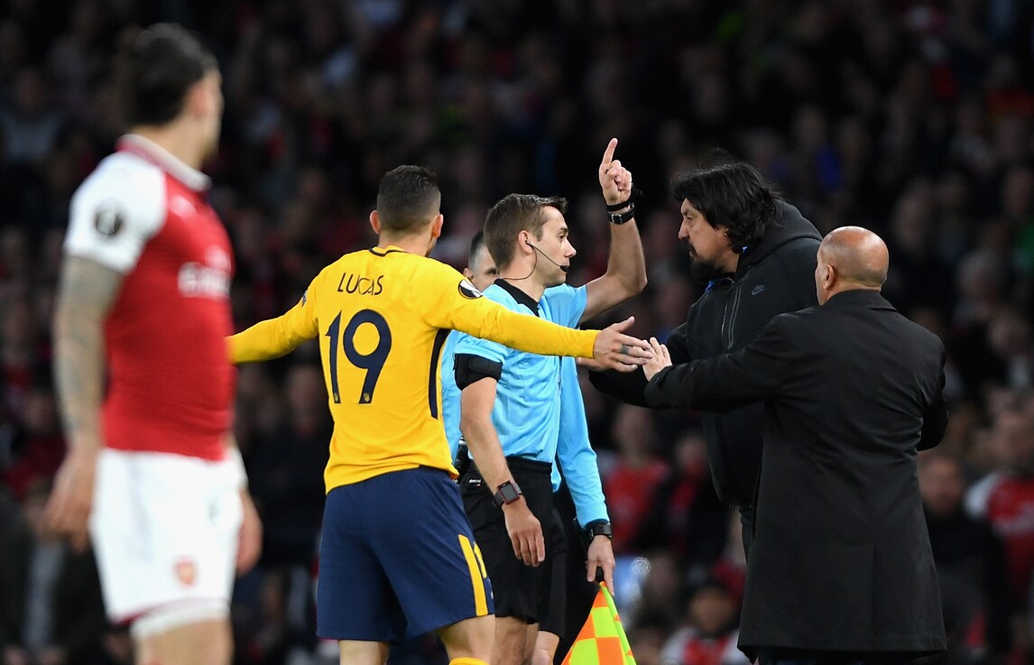 Arsenal-Atletico Madrid: Simeone all'arbitro: «Hijo de .... ». E Turpin lo allontana