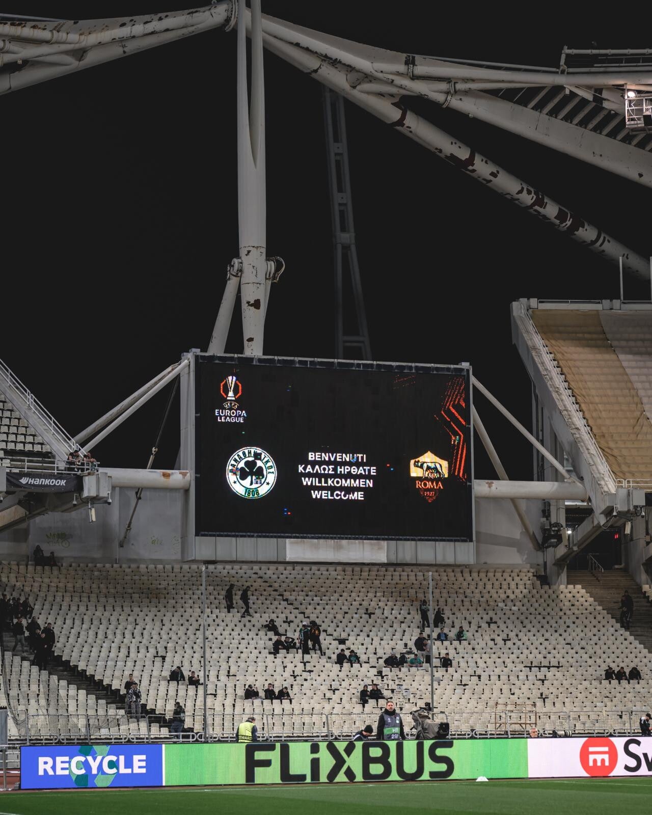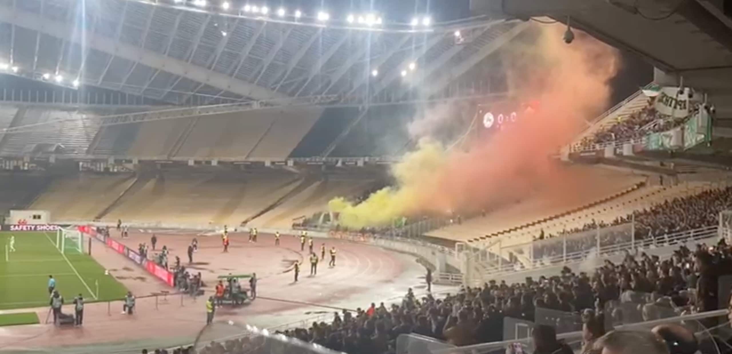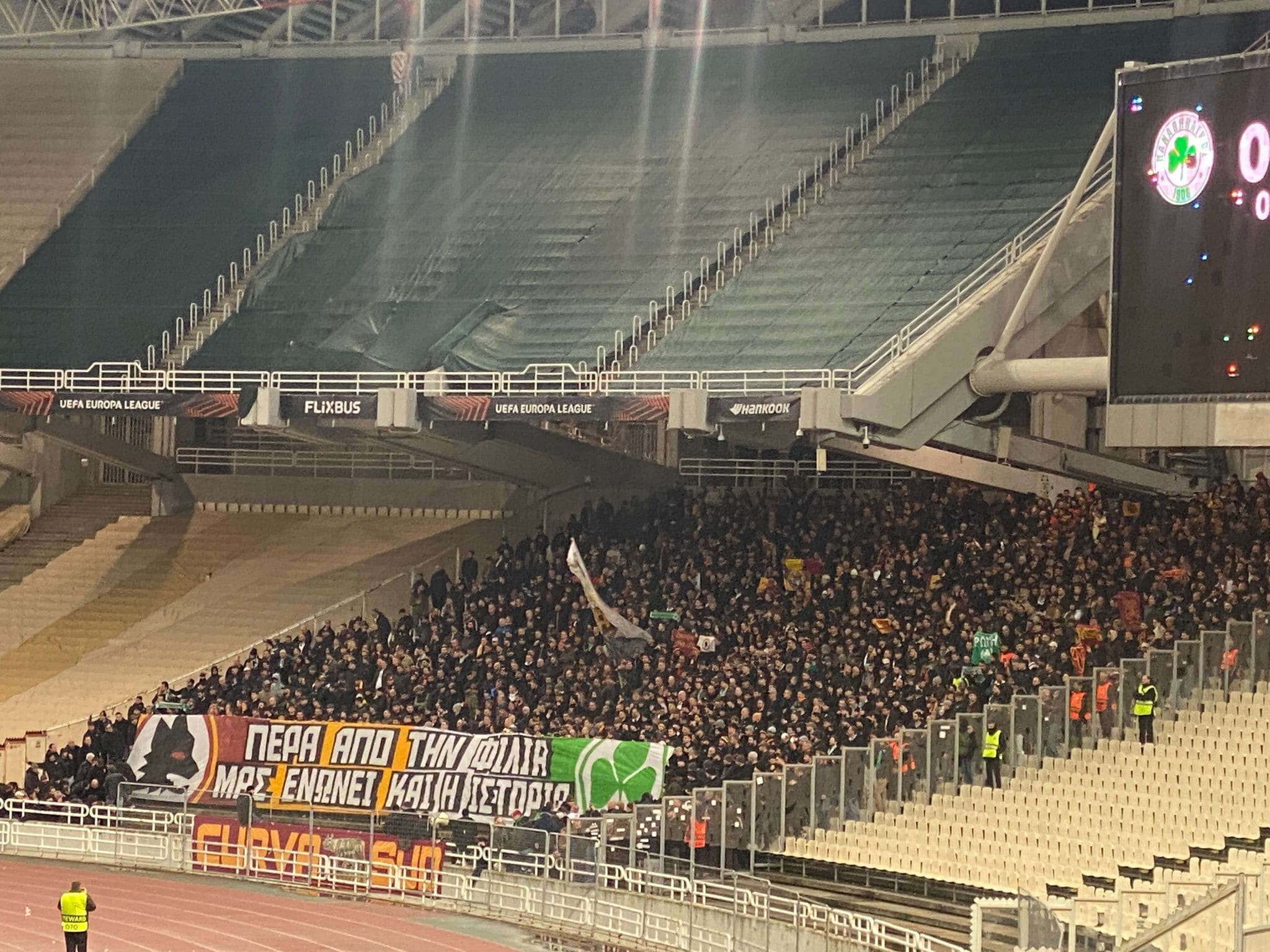 Gemellaggio Panathinaikos e Roma, striscioni e bandiere: è festa tra i tifosi sugli spalti