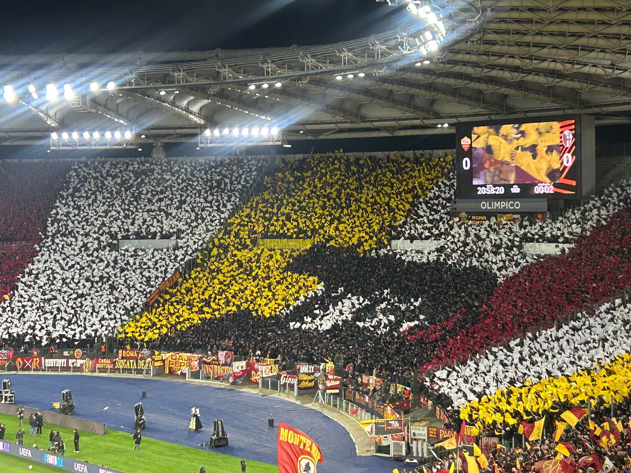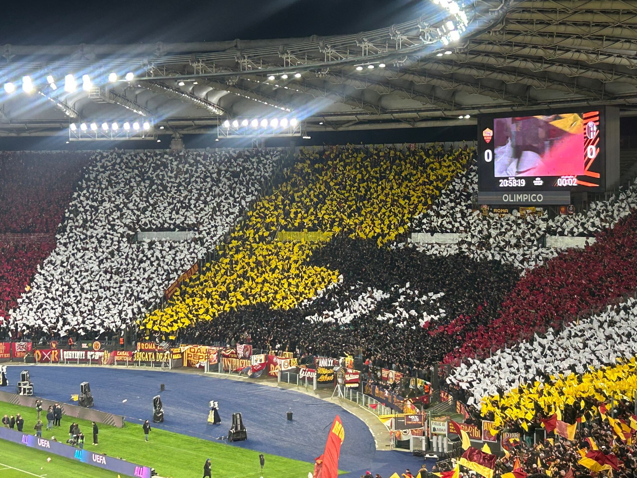L'Olimpico è uno spettacolo: la coreografia dei tifosi per Roma-Bologna è da applausi