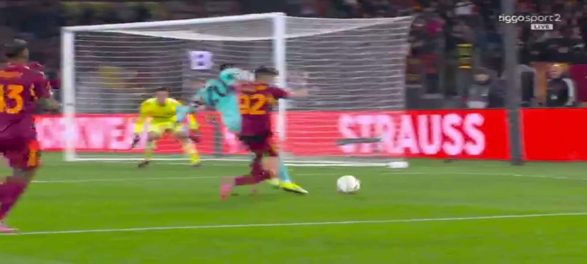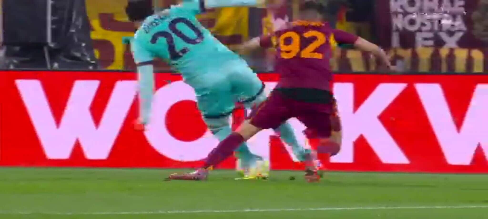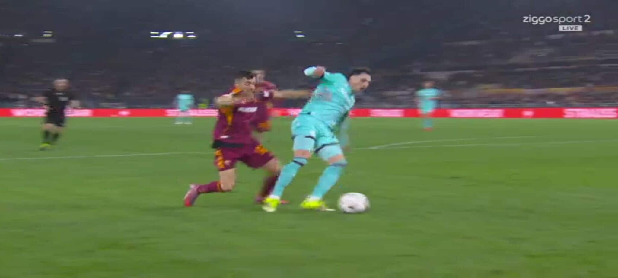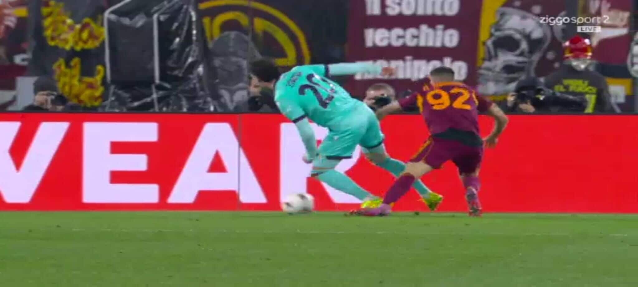 El Shaarawy atterra Zortea, l'arbitro non ha dubbi: la sequenza del rigore in Roma-Bologna