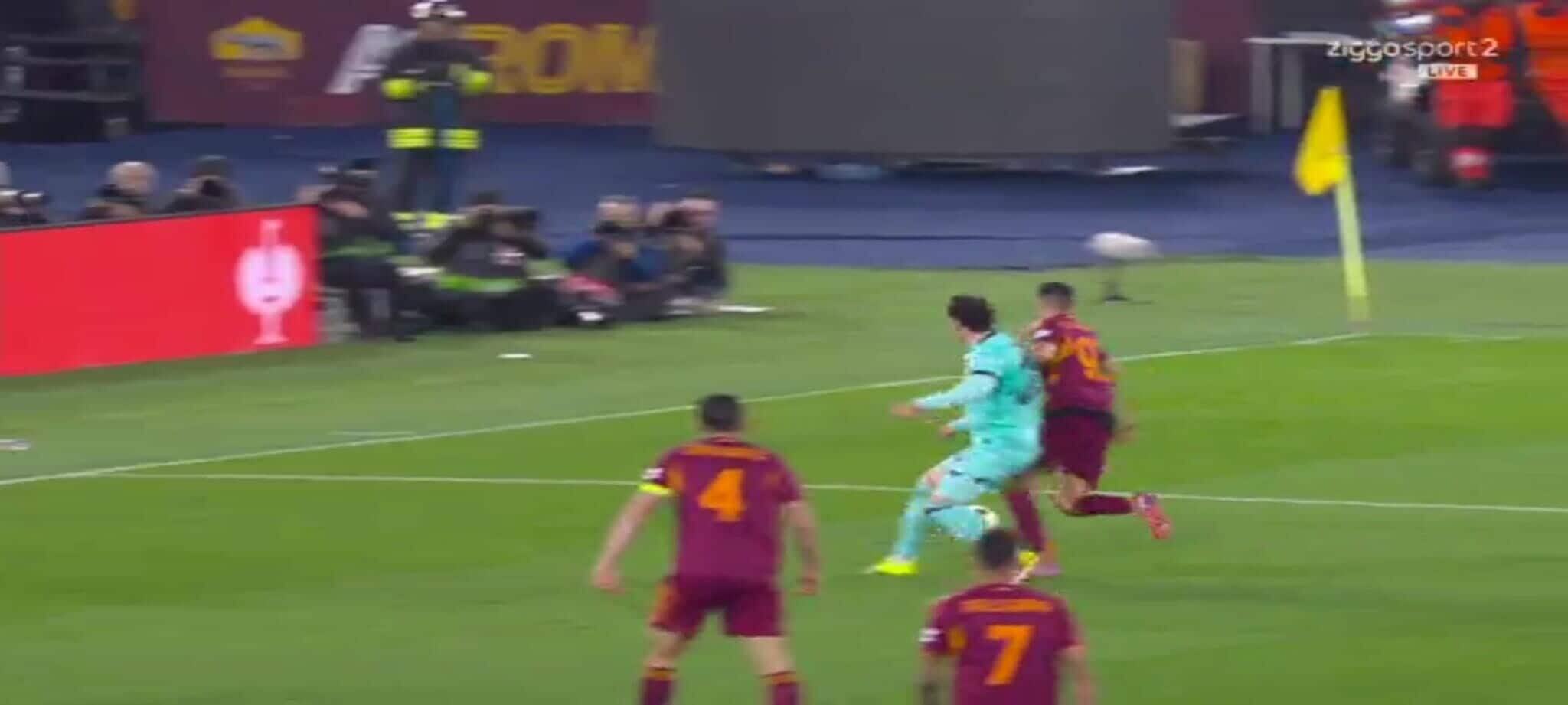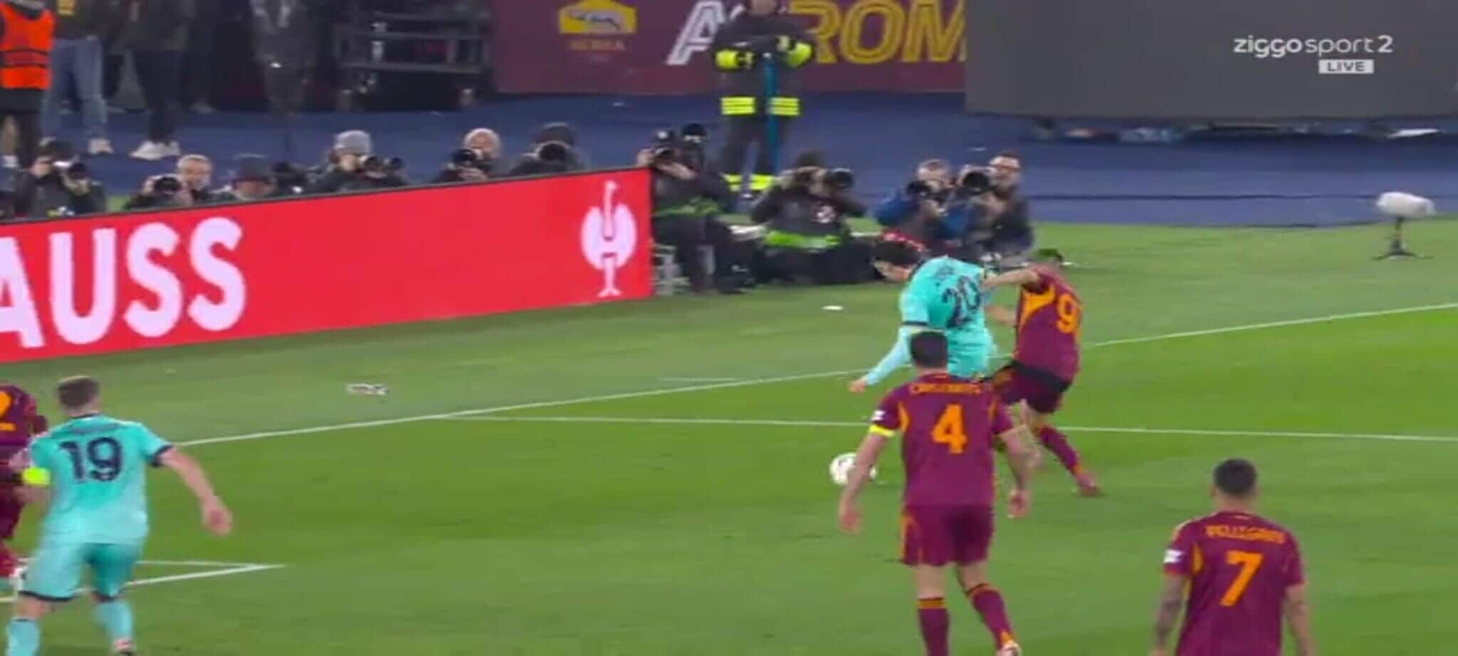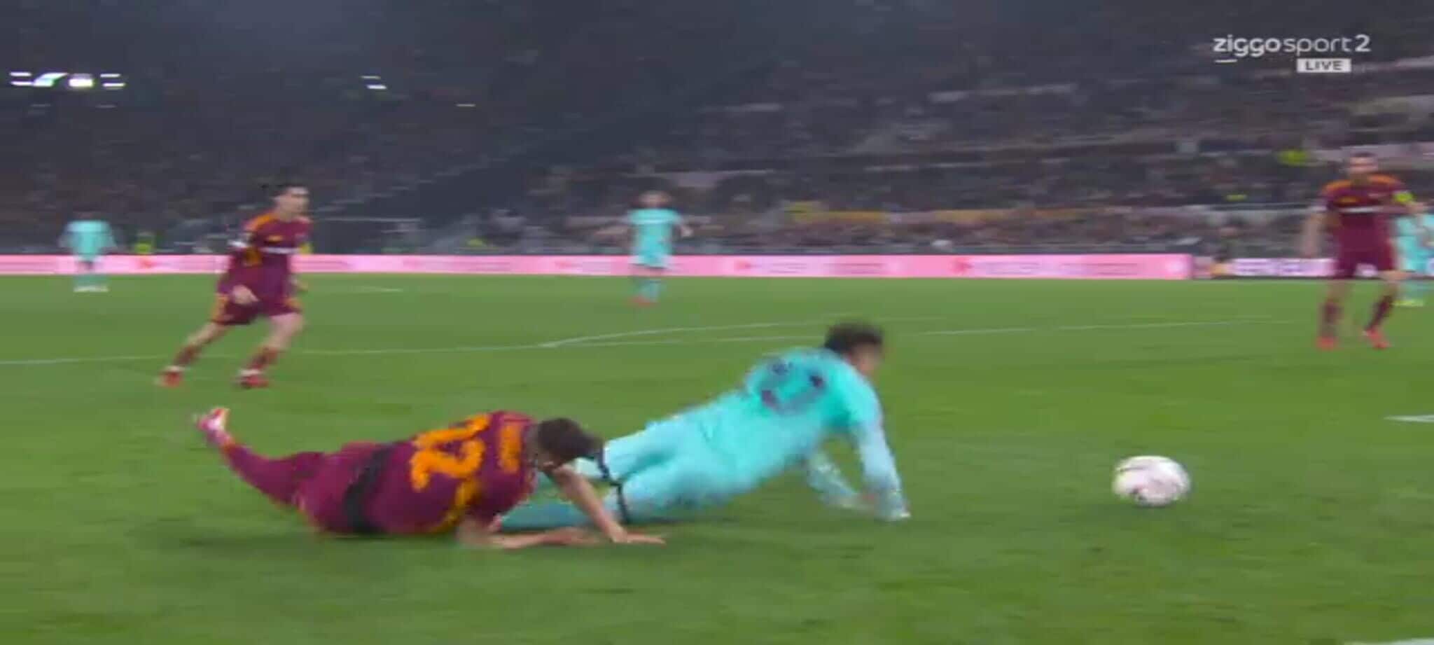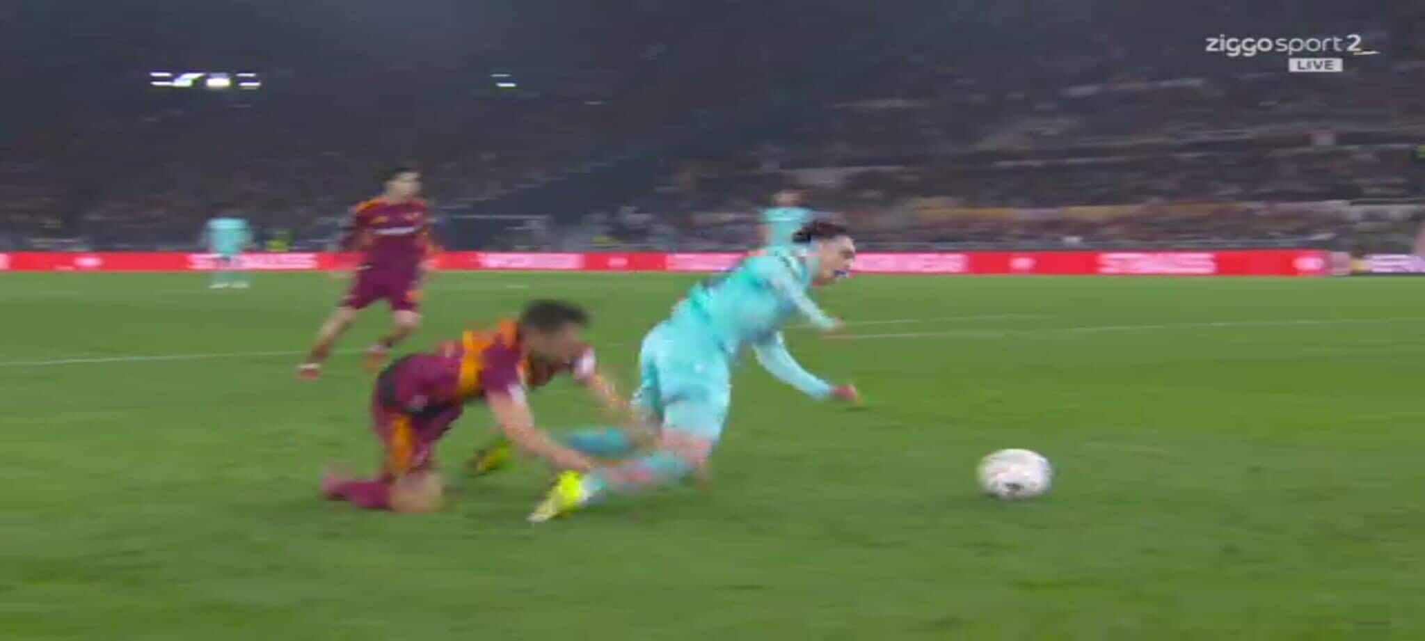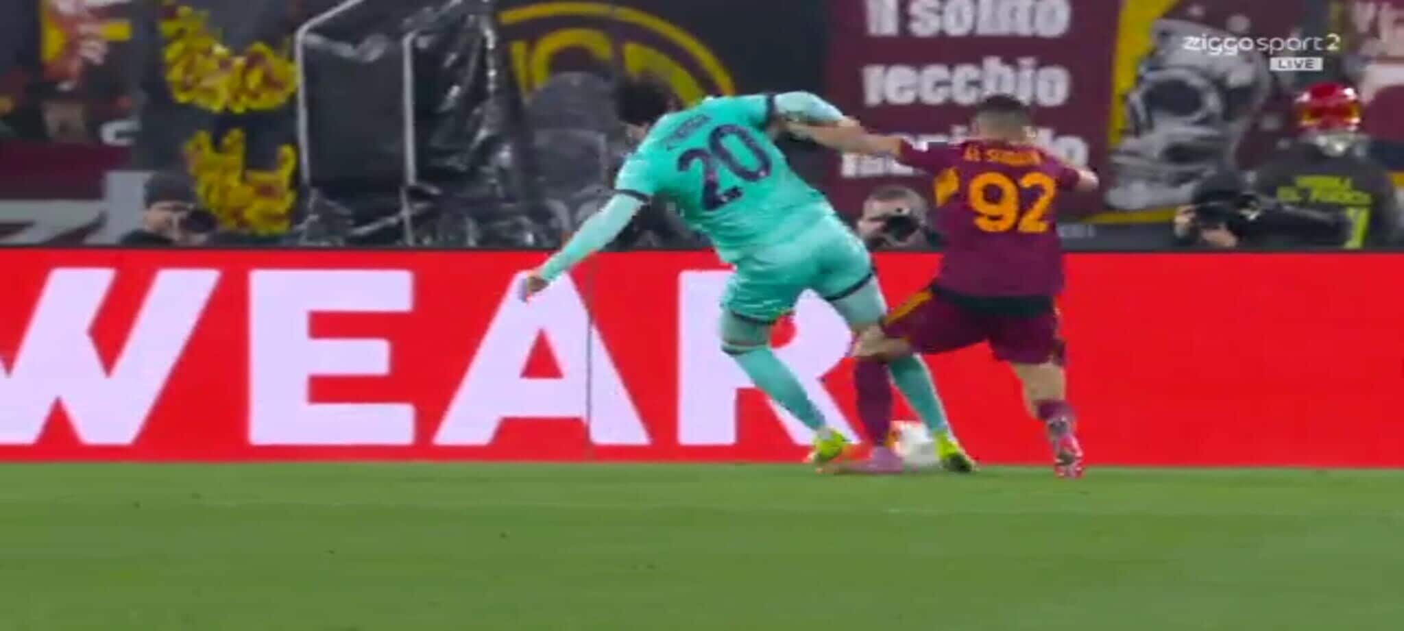 El Shaarawy atterra Zortea, l'arbitro non ha dubbi: la sequenza del rigore in Roma-Bologna