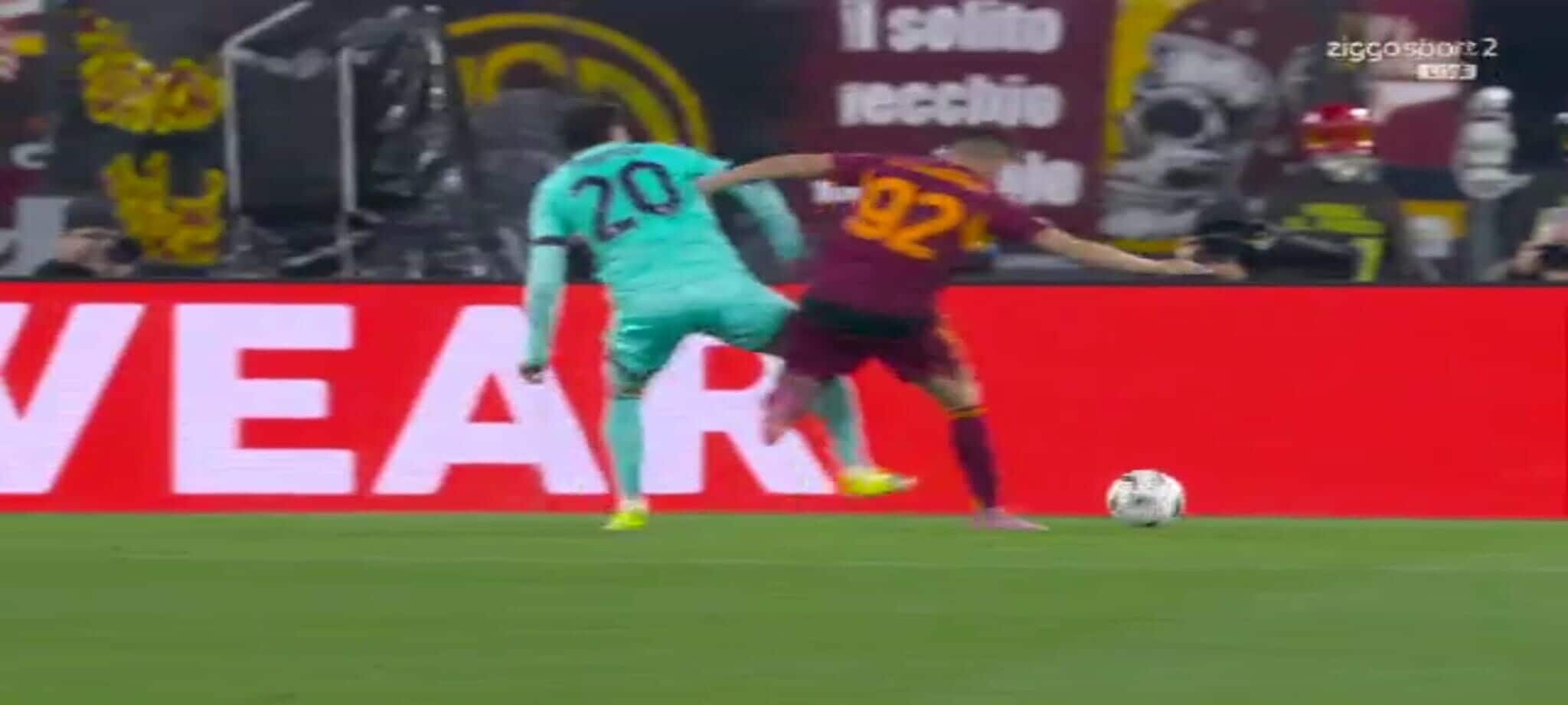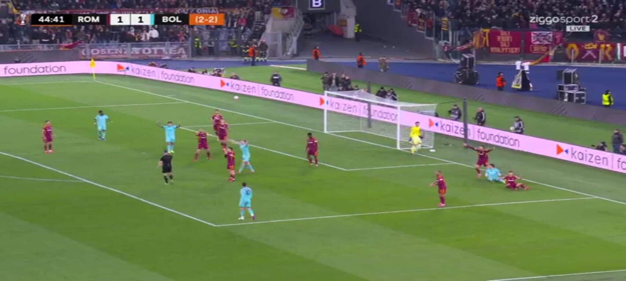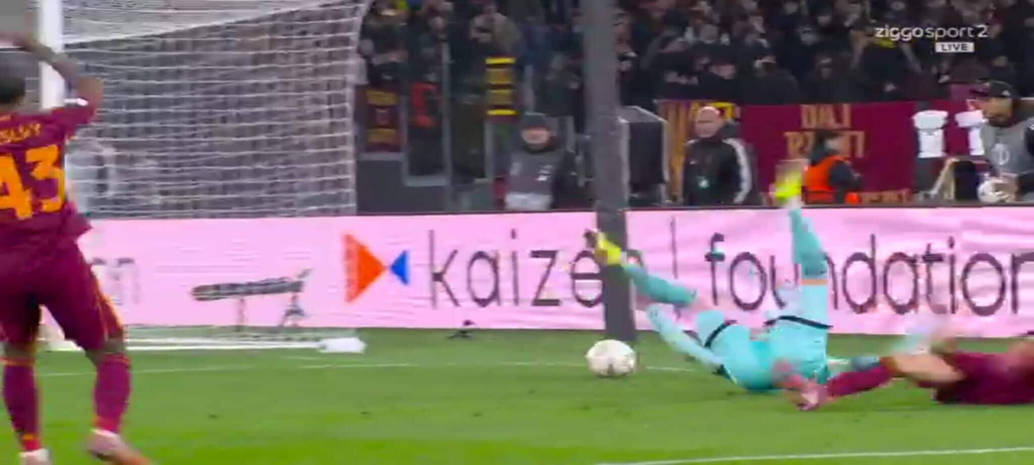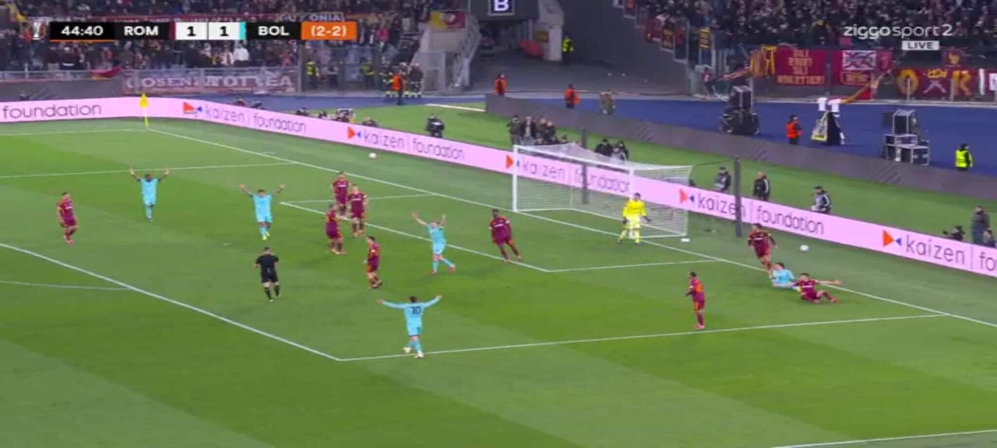 El Shaarawy atterra Zortea, l'arbitro non ha dubbi: la sequenza del rigore in Roma-Bologna