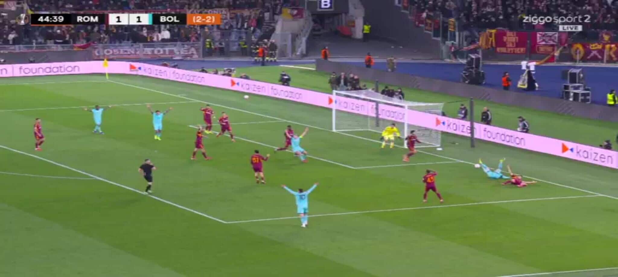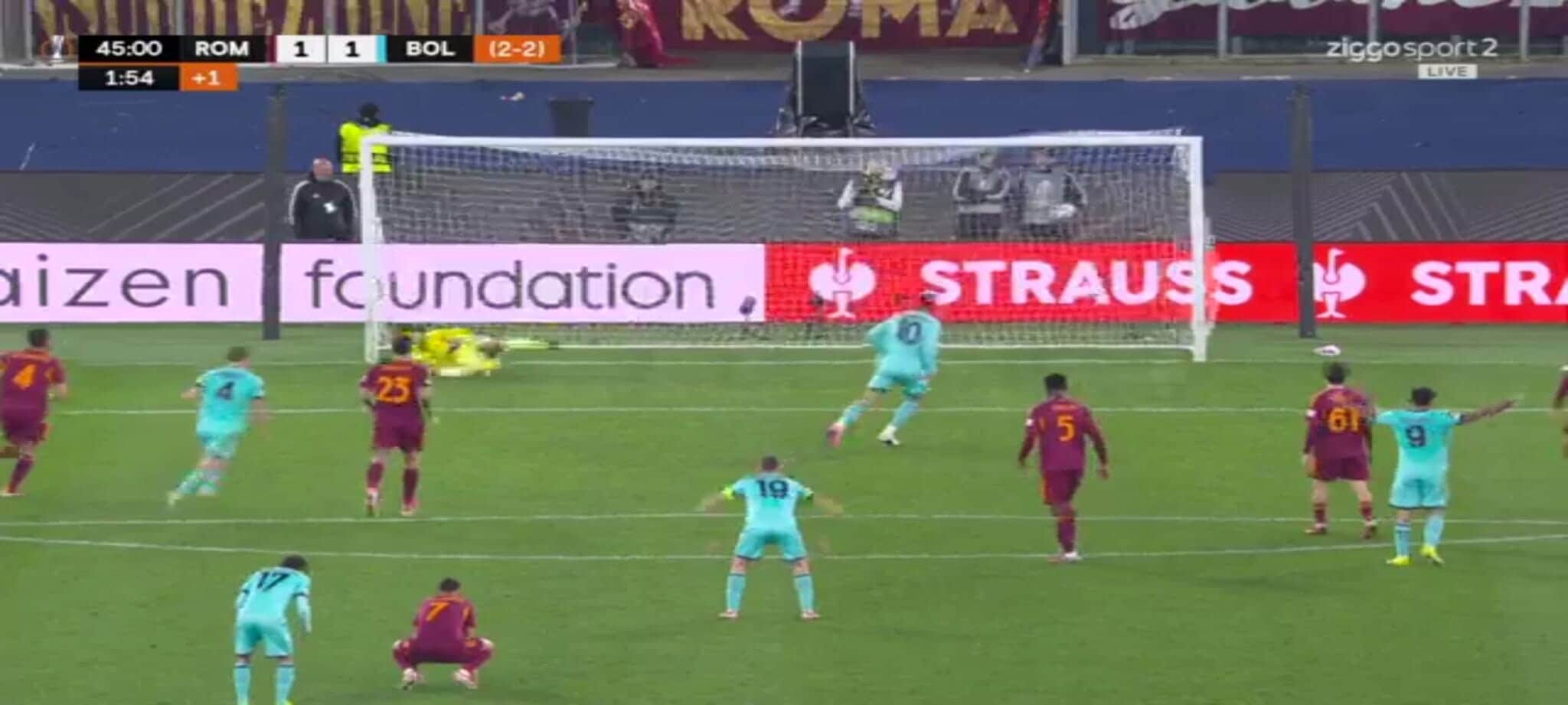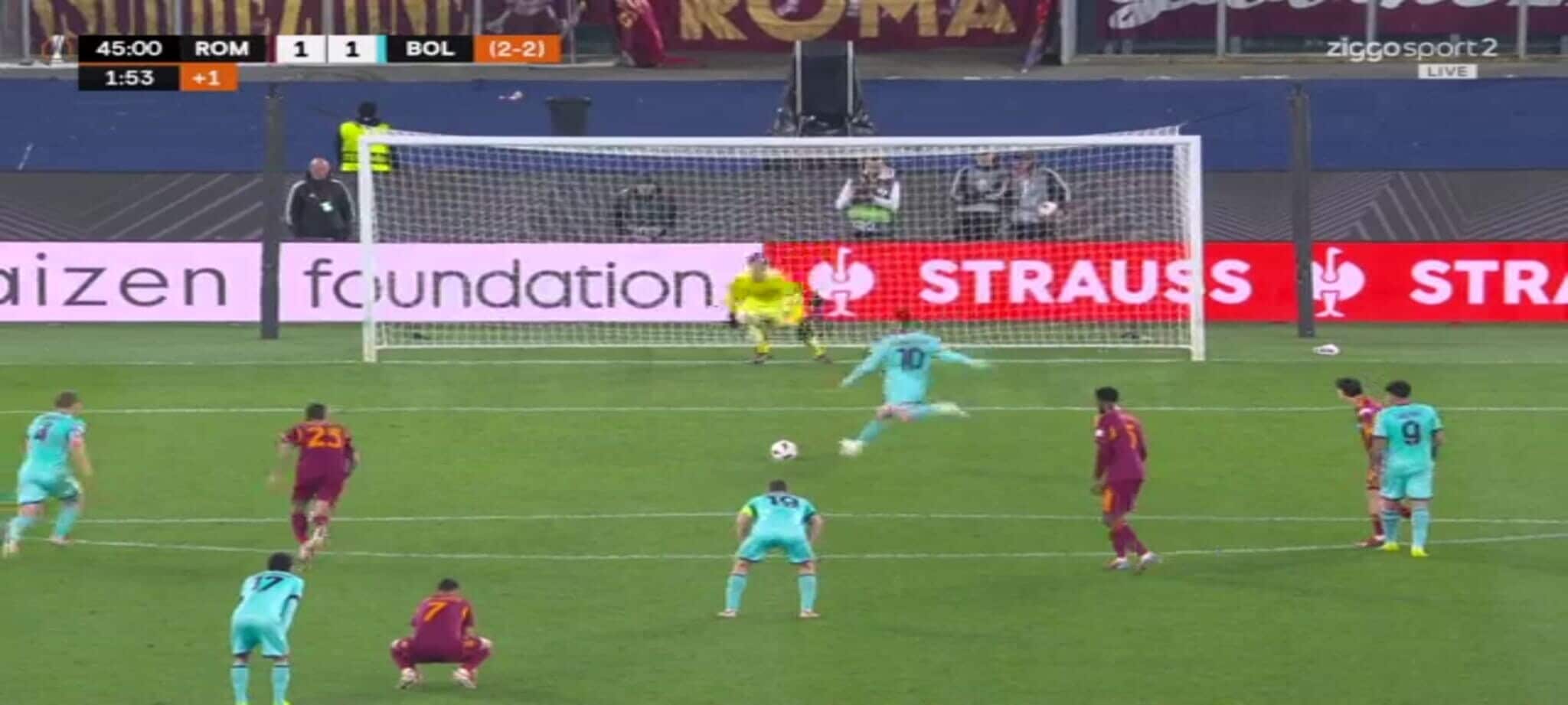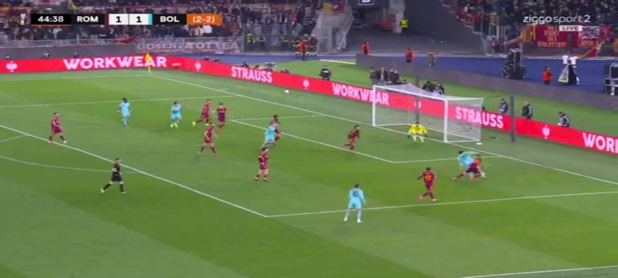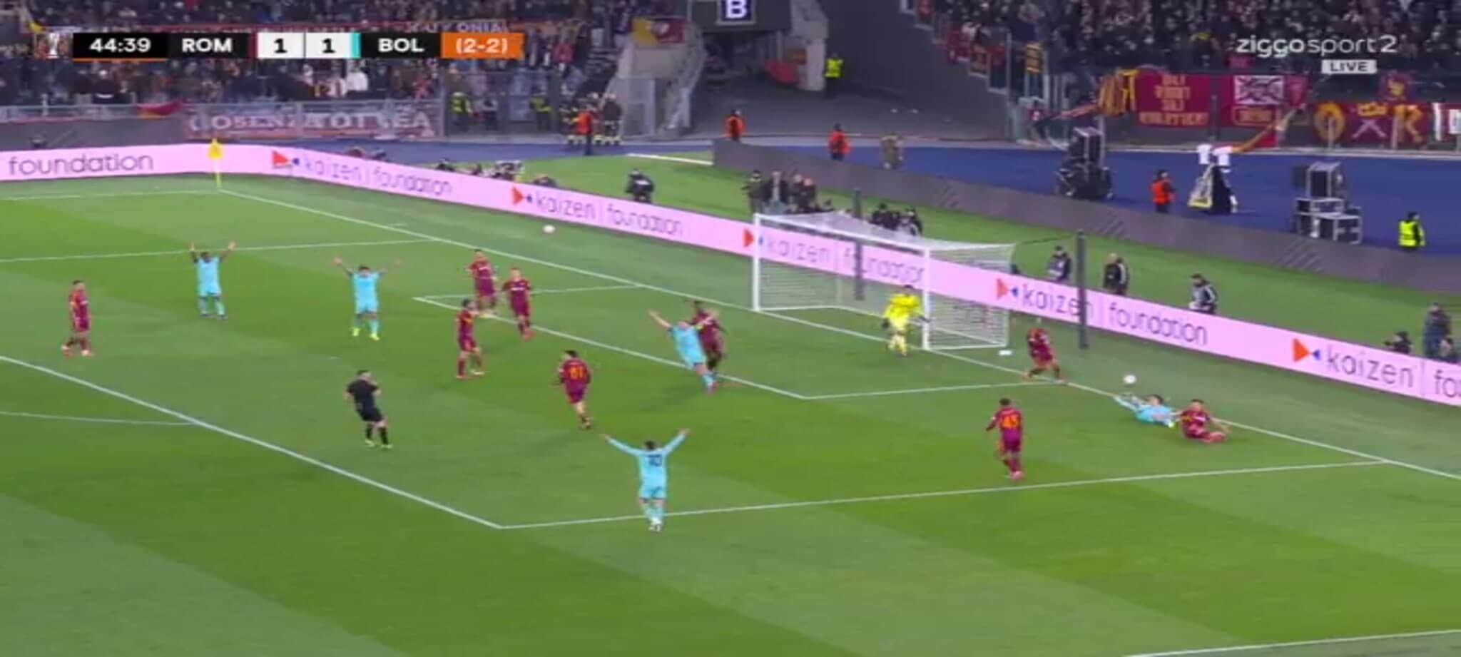 El Shaarawy atterra Zortea, l'arbitro non ha dubbi: la sequenza del rigore in Roma-Bologna