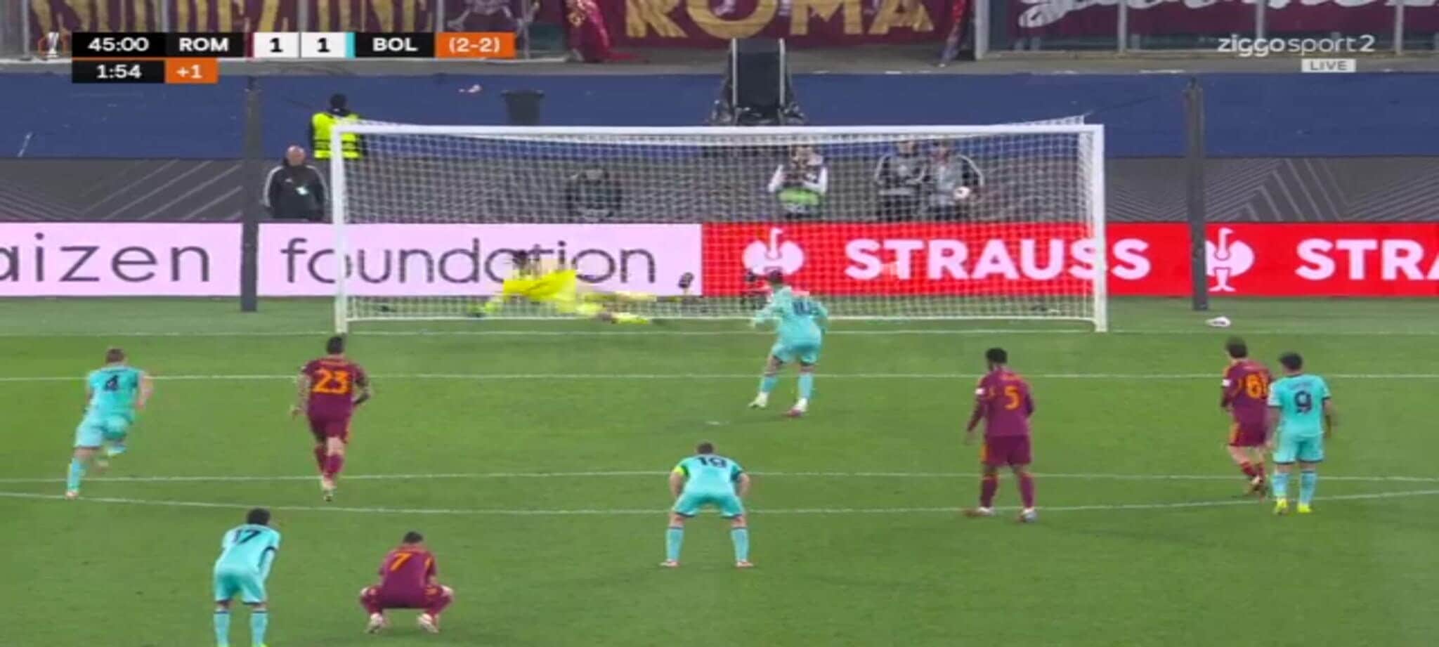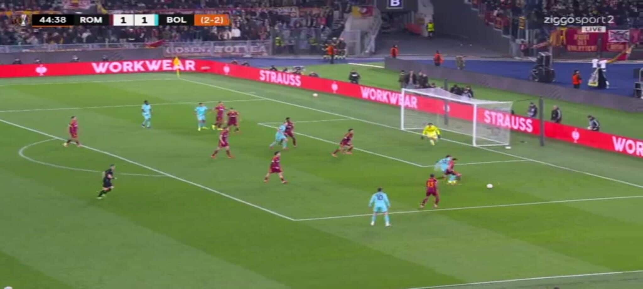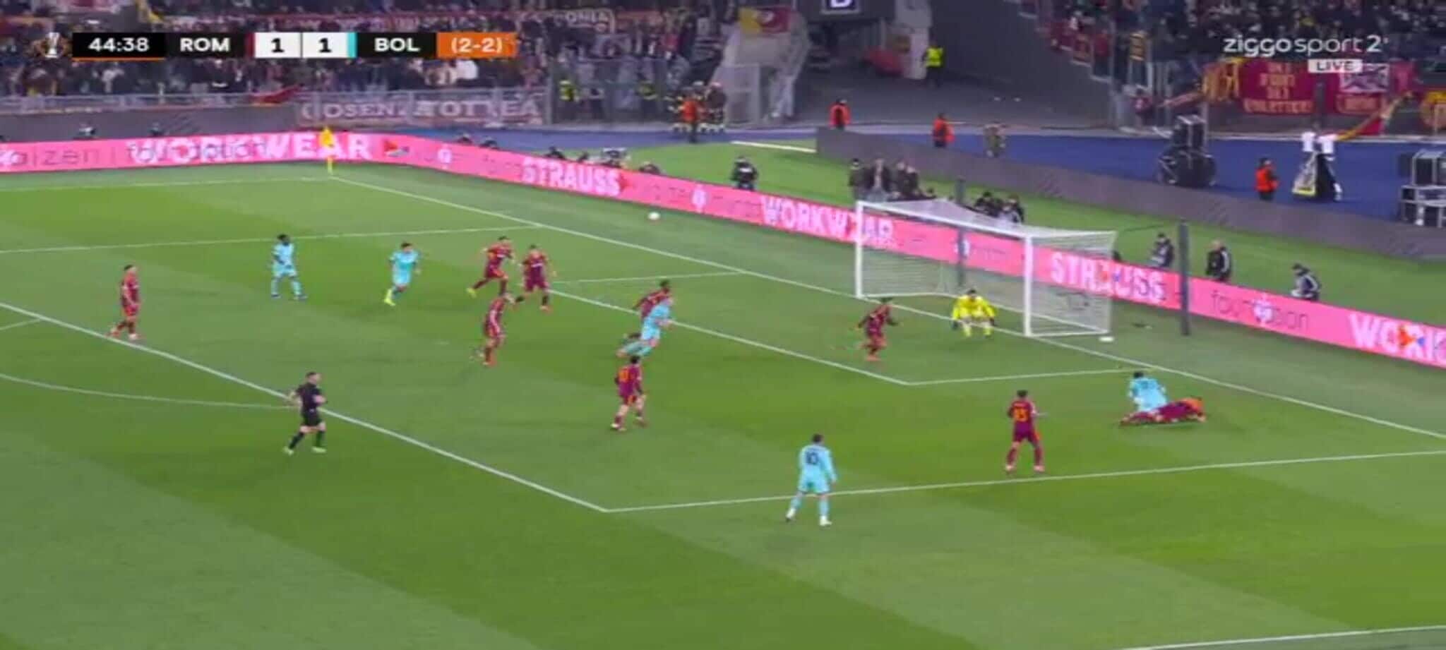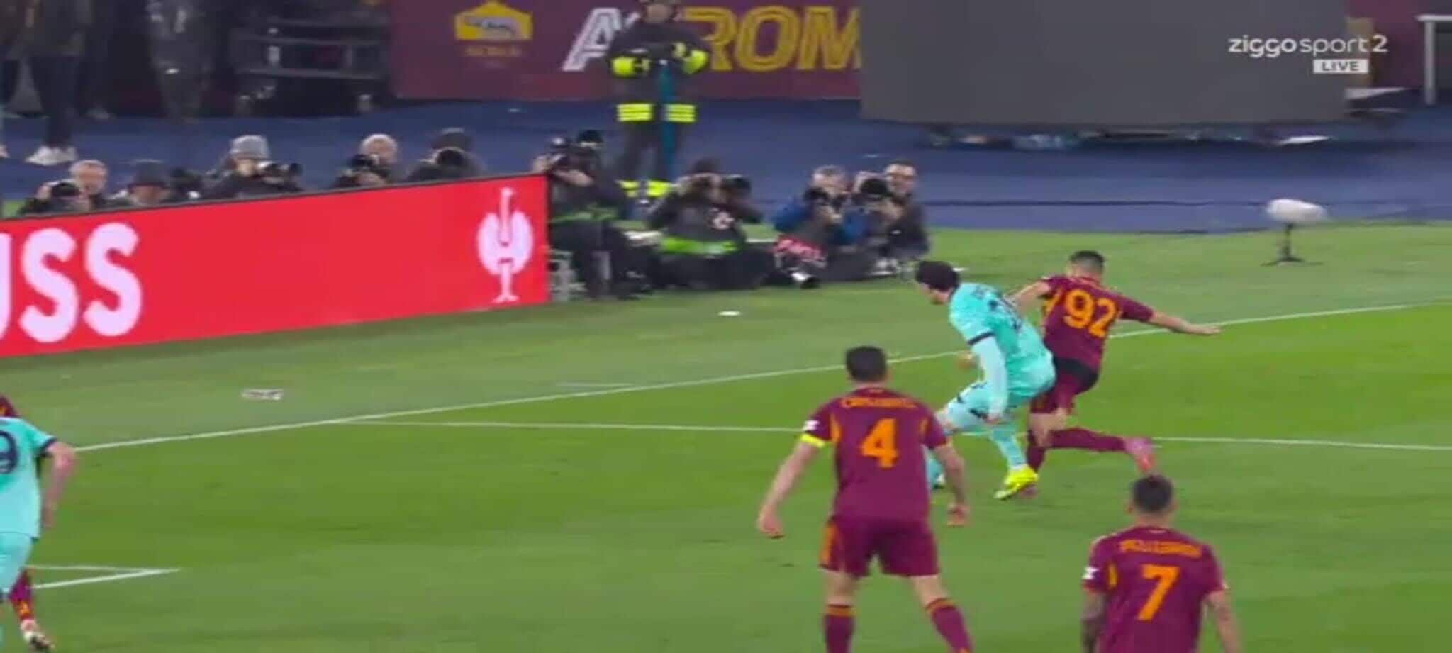 El Shaarawy atterra Zortea, l'arbitro non ha dubbi: la sequenza del rigore in Roma-Bologna
