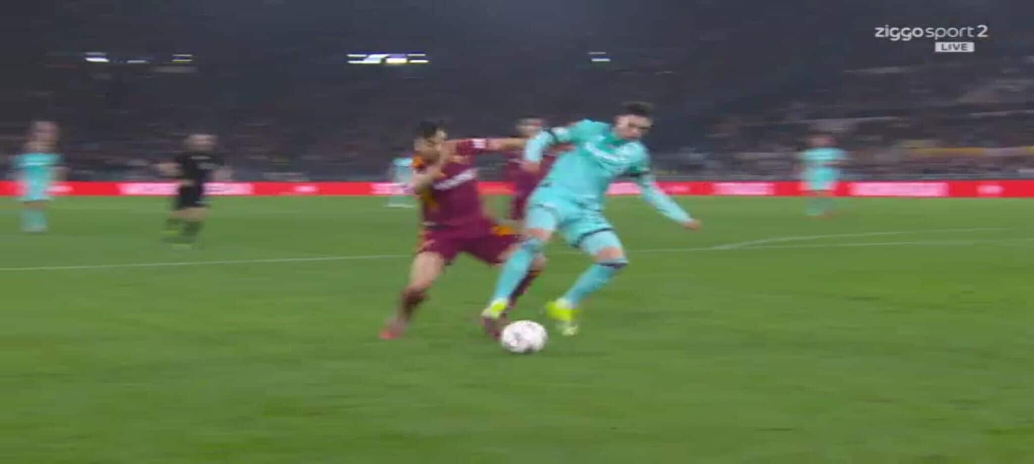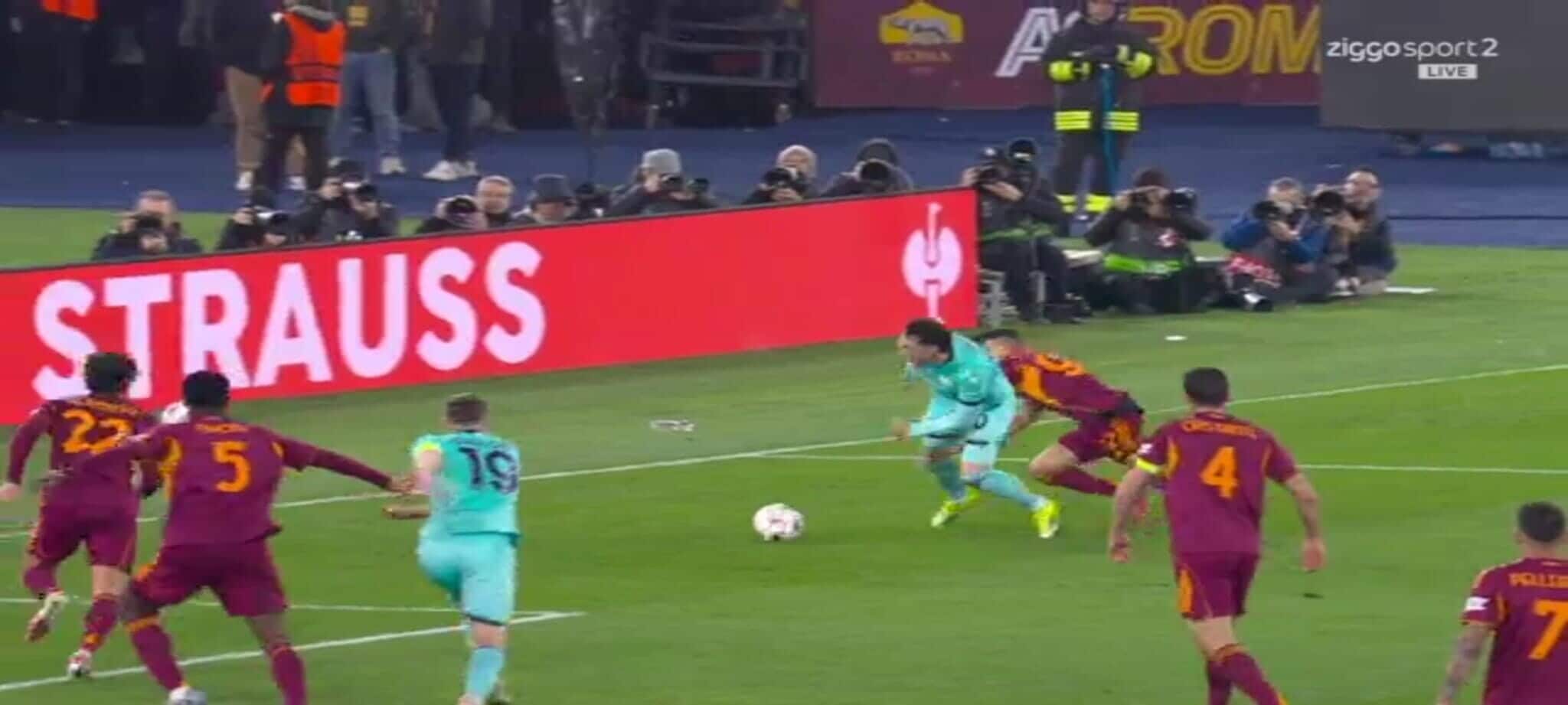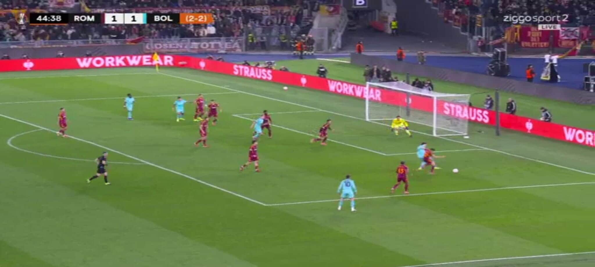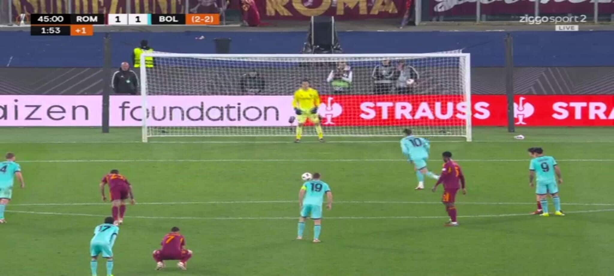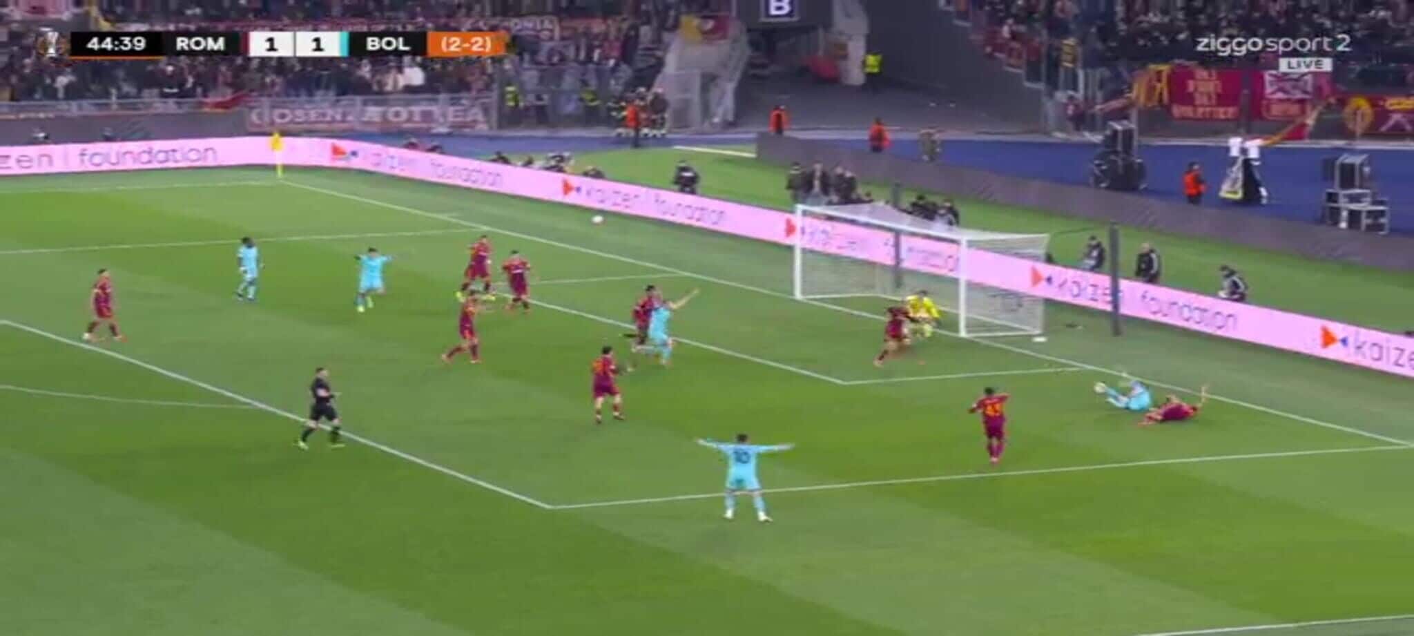 El Shaarawy atterra Zortea, l'arbitro non ha dubbi: la sequenza del rigore in Roma-Bologna