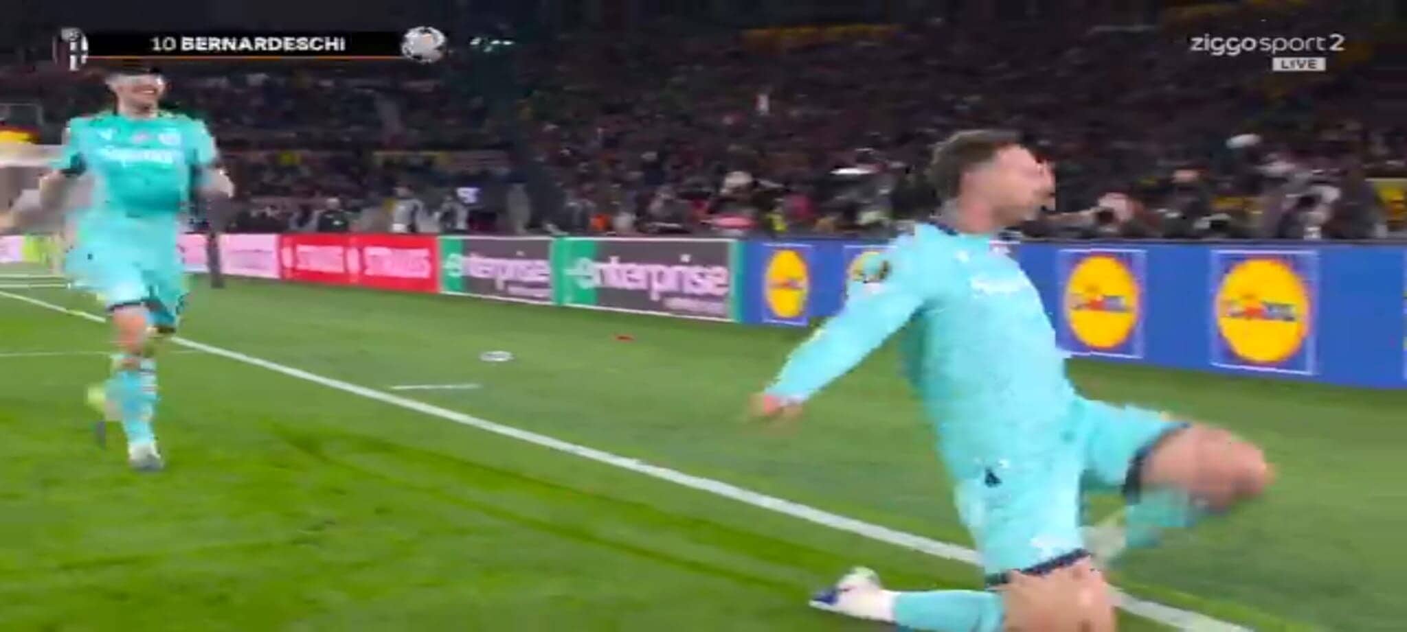 Cambia la partita sul finale di primo tempo con i rossoblù che tornano in vantaggio nel derby italiano di Europa League: Bernardeschi dal dischetto spiazza Svilar