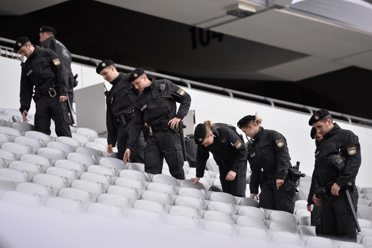 La polizia tedesca controlla lo stadio in vista dell'amichevole tra gli uomini di Loew e quelli di Conte. Allerta massima dopo gli attentati di Bruxelles