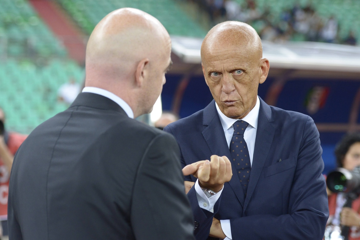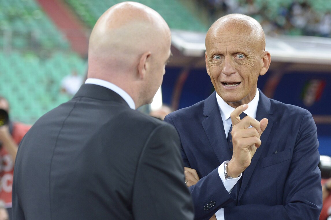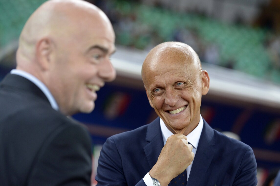 Presenti al San Nicola il presidente della Fifa Gianni Infantino, il presidente della Figc Carlo Tavecchio e il responsabile della commissione arbitrale dell'Uefa, Pierluigi Collina