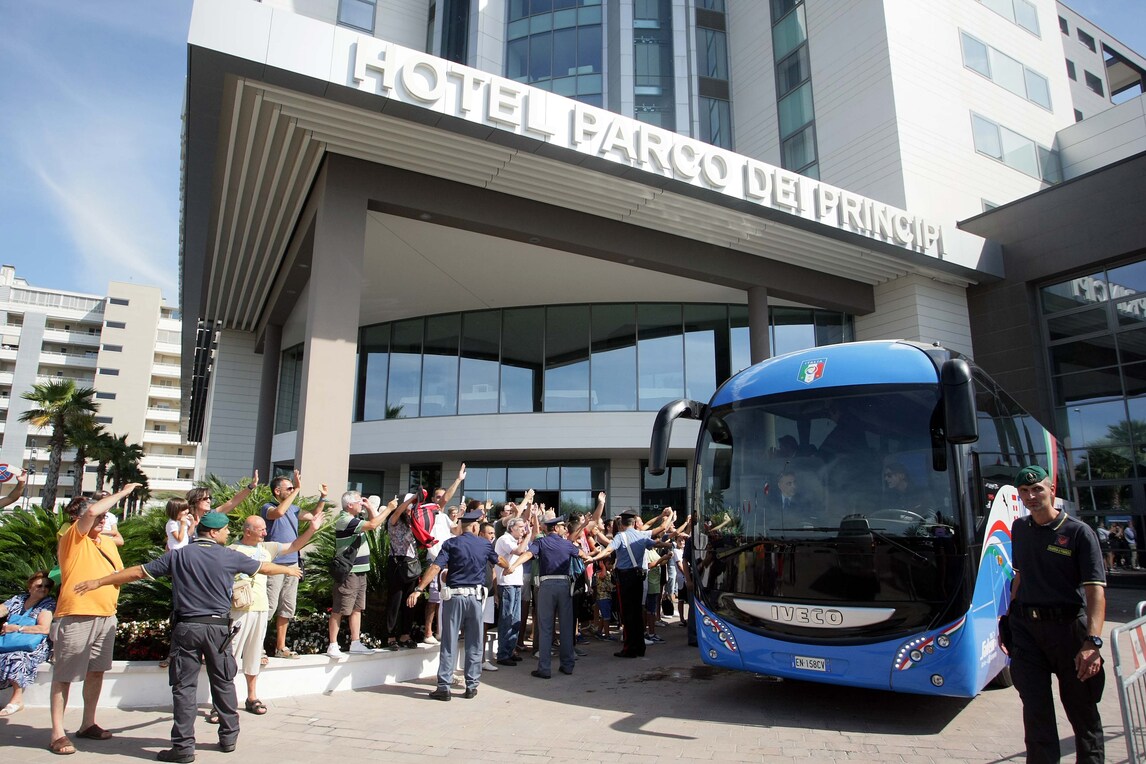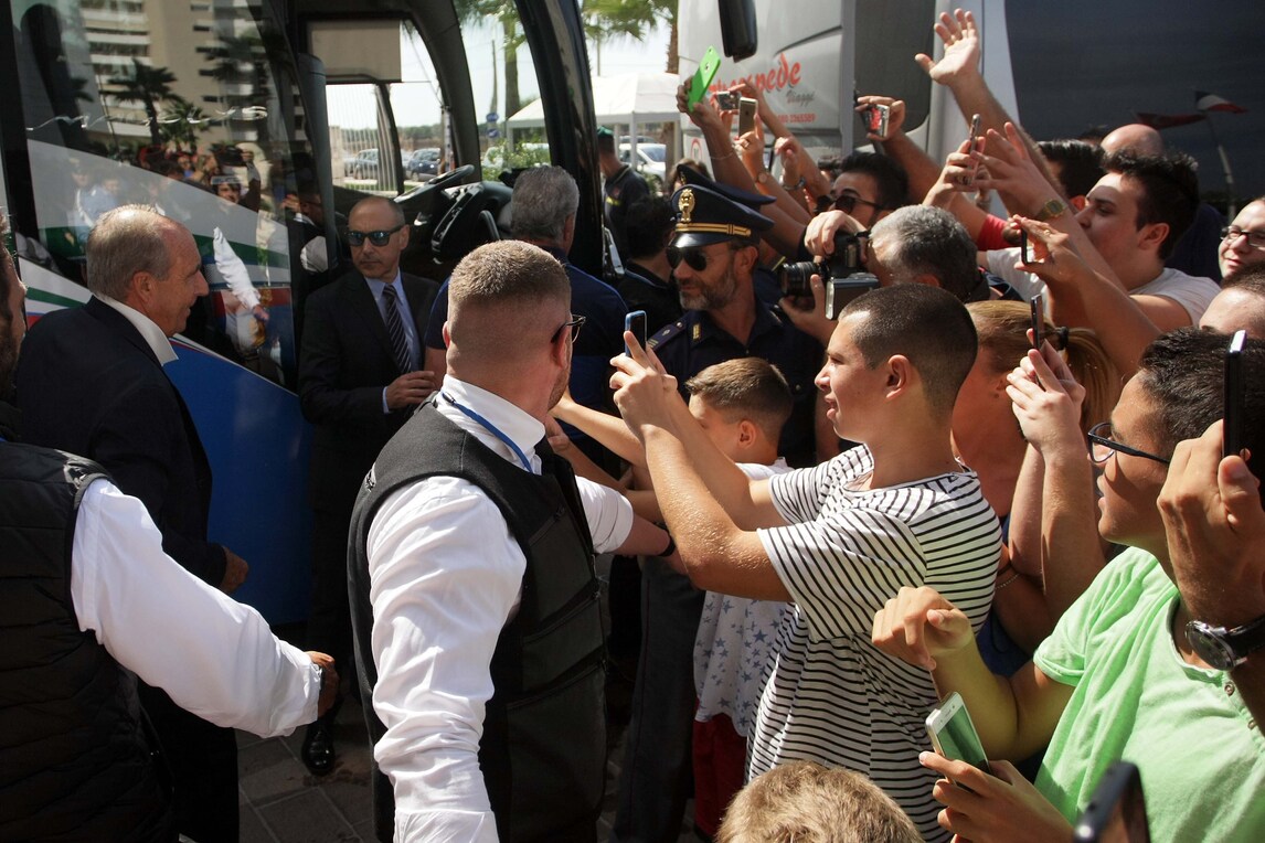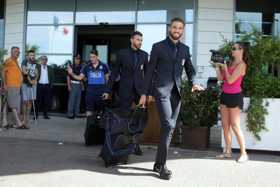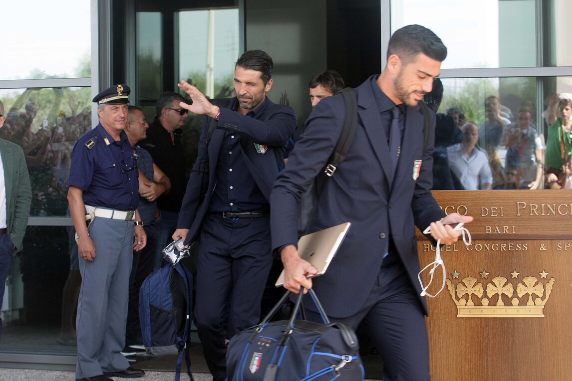 Gli azzurri di Ventura lasciano Bari tra l'affetto dei tifosi, in vista della prima partita di qualificazione ai Mondiali del 2018 in Russia. Il difensore bianconero si aggrega alla squadra, dopo aver saltato la partita con la Francia per i problemi di salute del figlio che ora sta meglio