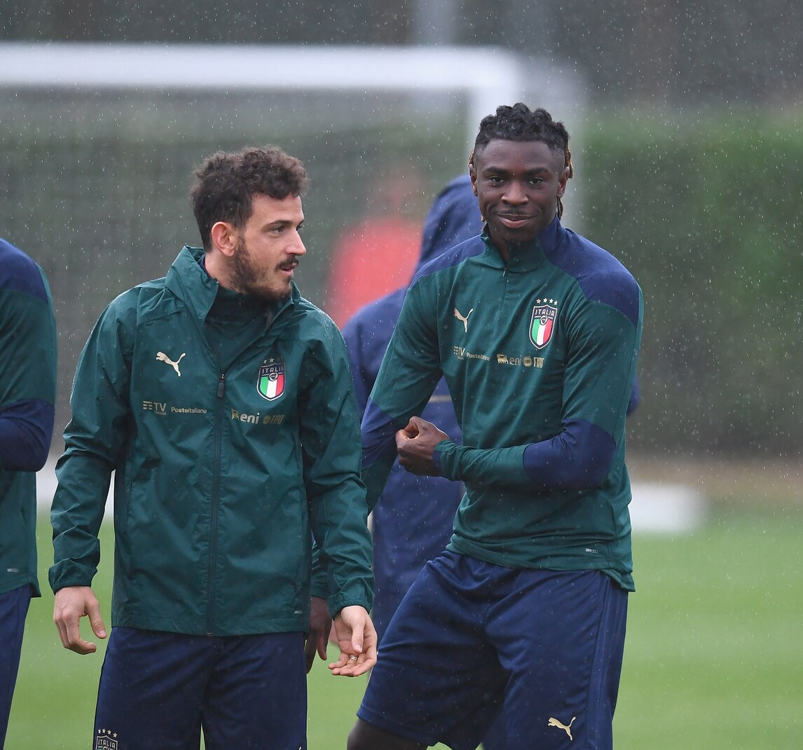 Il nuovo attaccante della Juve si allena a Coverciano con la nazionale in vista della gara con la Moldavia mentre Immobile prova a dimenticare il rosso con l'Inter