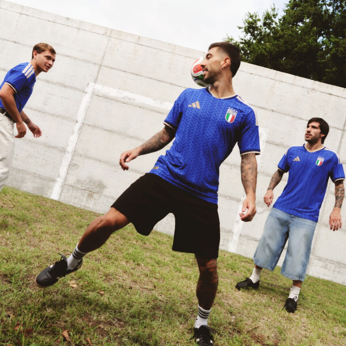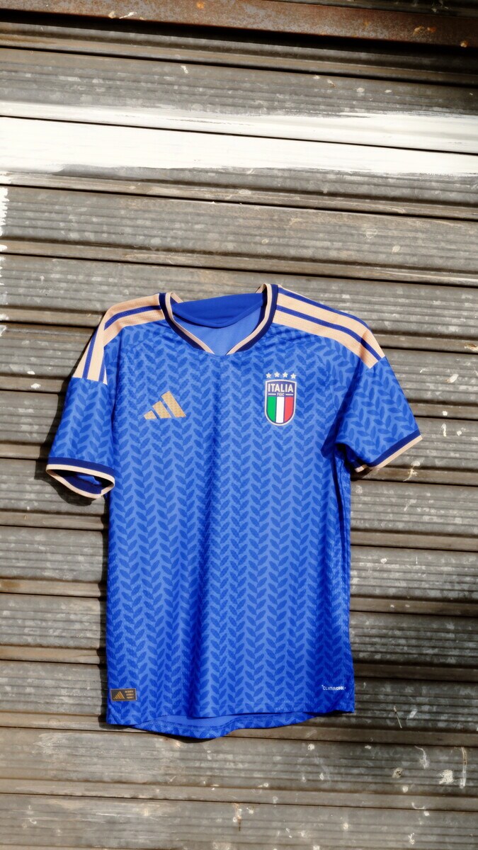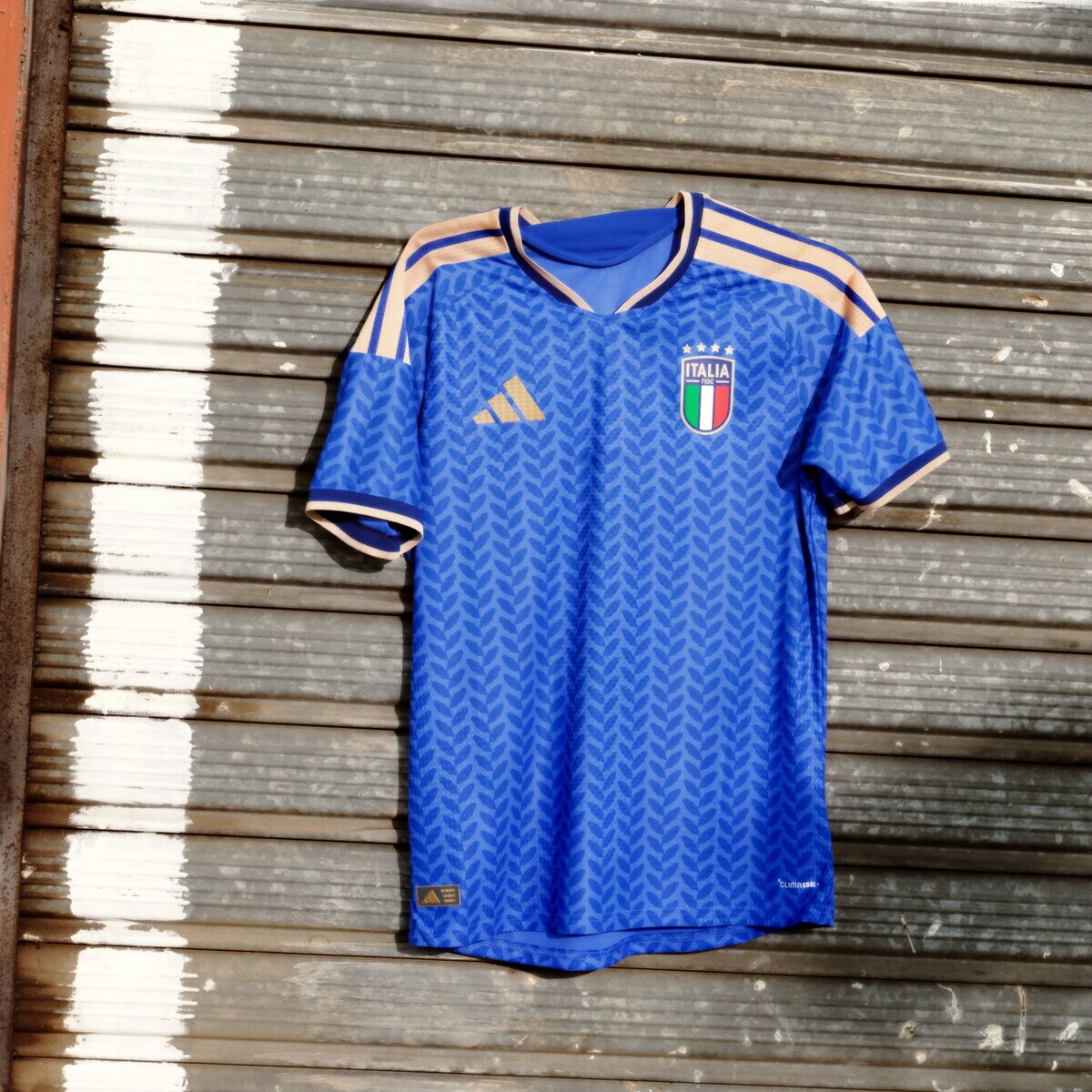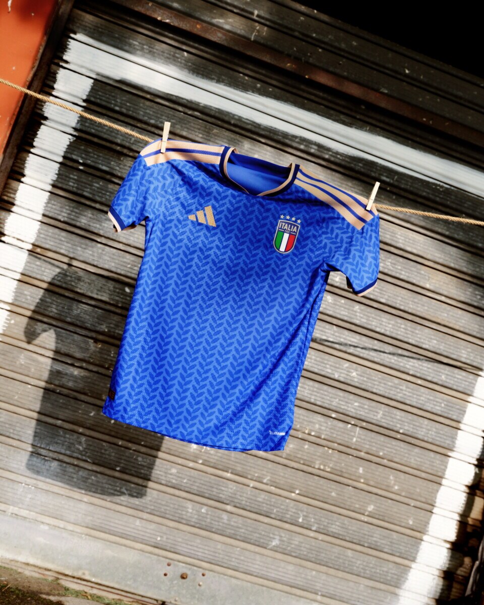 La base blu della maglia Home è adornata da un motivo grafico ripetuto, basato sulle corone d'alloro, un tempo indossate da atleti e imperatori nell'Impero Romano per rappresentare la vittoria e il trionfo. Tutte le foto del nuovo kit della Nazionale
