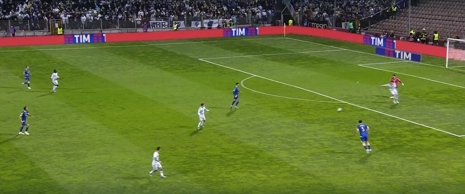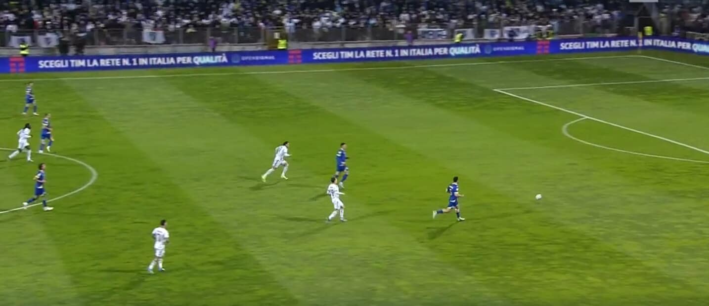 Barella recupera palla e serve l'assist per il destro a giro vincente dell'attaccante della Fiorentina: finale Playoff sbloccata al 15'