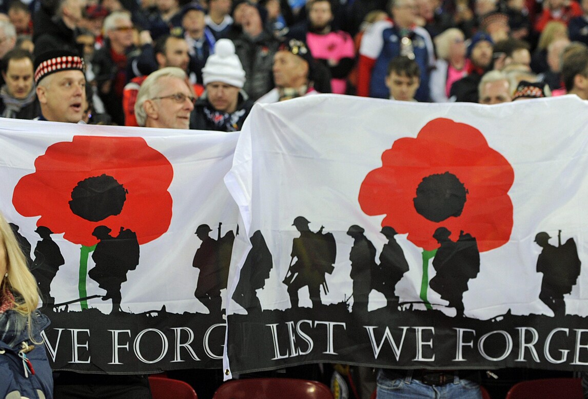 La corona di papaveri, usata per ricordare i defunti durante le varie guerre a cui ha preso parte la Gran Bretagna, fa la sua apparizione prima della sfida di Londra