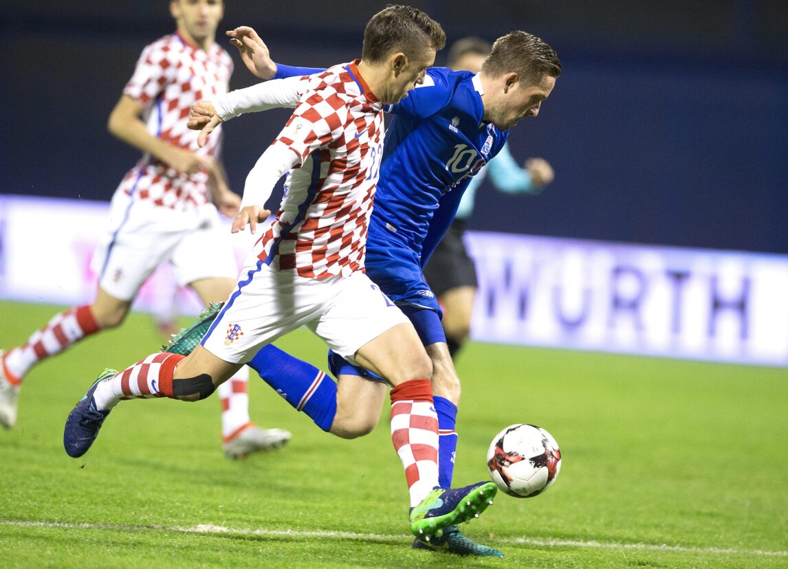 La doppietta di Brozovic stende la nazionale sorpresa degli Europein Francia. Espulso Perisic nel finale. Croazia davanti a tutti nel suo girone con 10 punti in 4 partite