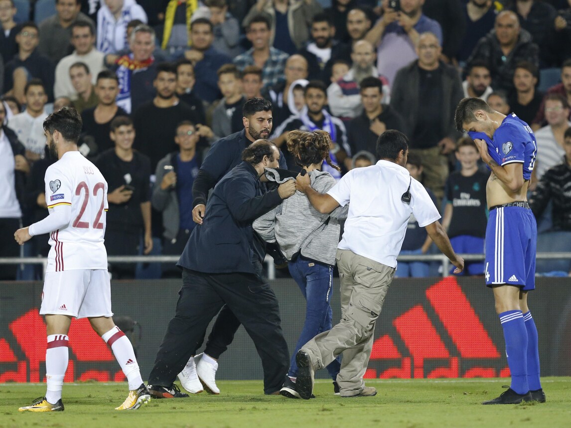 Al termine del match tra Israele e Spagna, sei tifosi si sono precipitati in campo: uno di questi, come racconta il portale 'The Times of Israel', si e' staccato dal gruppo e, con un coltello in mano, si e' diretto verso il centrocampista del Real Madrid Isco. L'arma gli è pero' caduta di mano prima di raggiungere lo spagnolo e l'uomo, assieme agli altri cinque 'invasori di campo', e' stato arrestato dalle forze dell'ordine. «Non ci sono state falle, le usuali misure di sicurezza sono state effettuate durante e dopo la gara», ha fatto sapere il portavoce della polizia locale, Micky Rosenfeld. Nessun accenno ad un tentativo di attentato, dunque, né Isco, a detta delle forze dell'ordine, è stato mai realmente in pericolo.