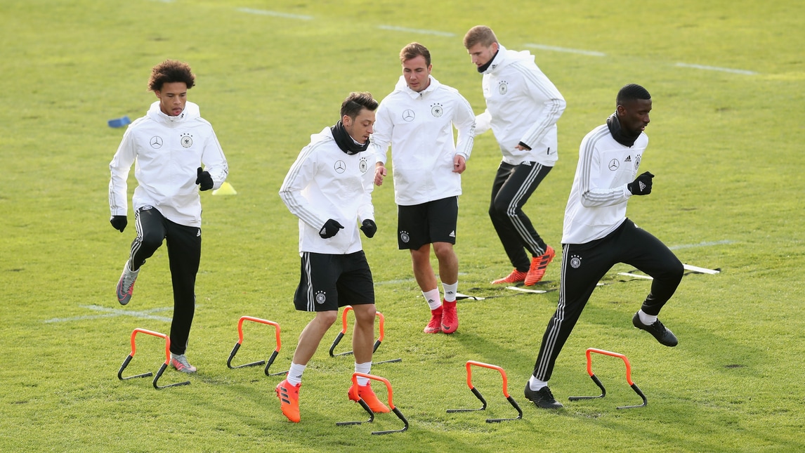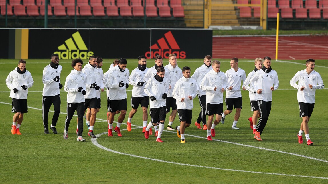 Il centrocampista si allena a Berlino in vista delle amichevoli con Inghilterra e Francia: i colori della divisa richiamano quelli della Juventus