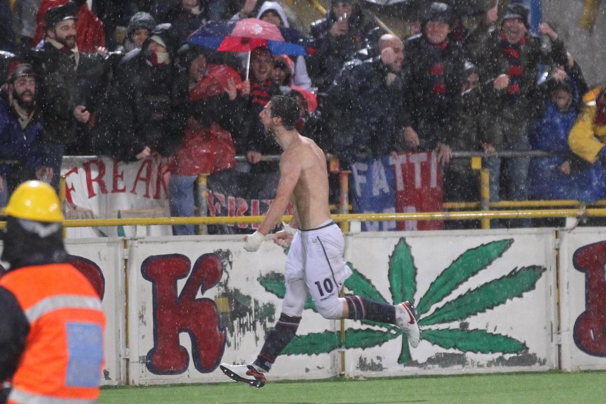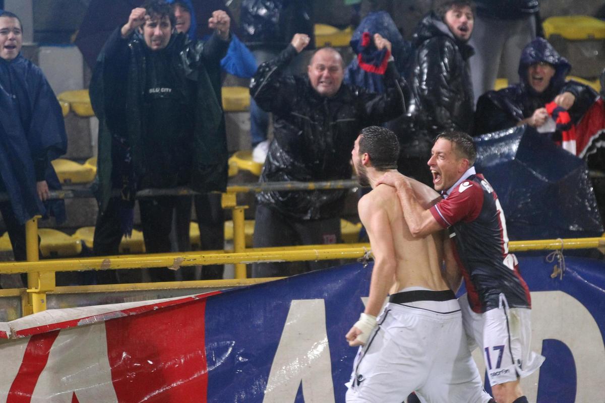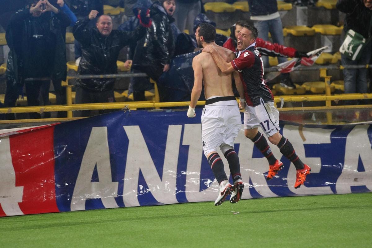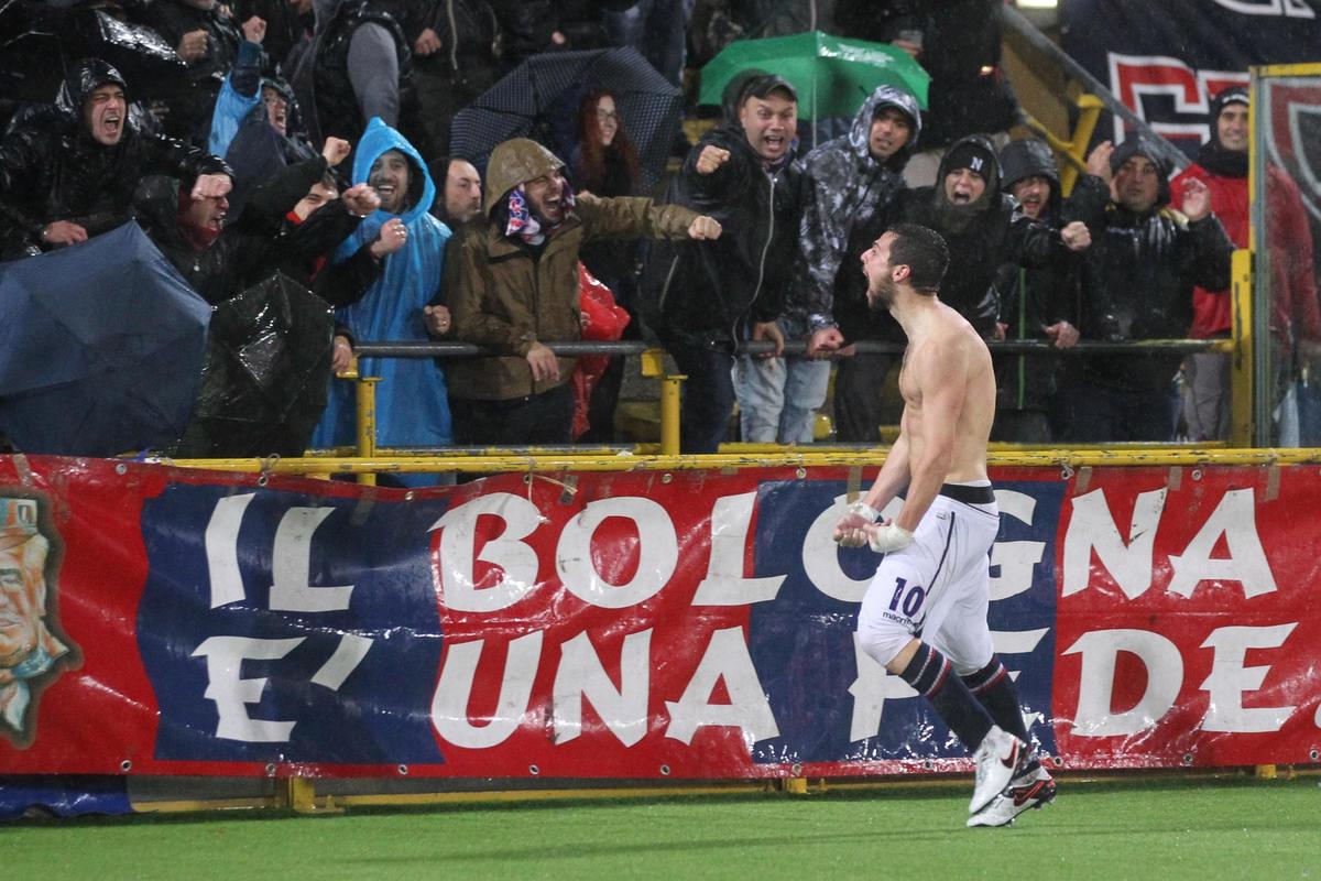 Le immagini più belle dal Dall'Ara dove all'87' l'ex giocatore della Roma regala il pareggio ai rossoblu con un rigore ed esulta togliendosi la maglietta