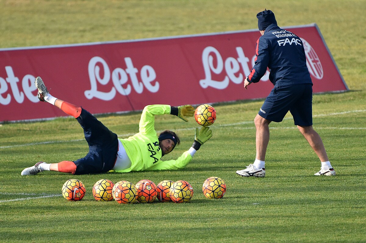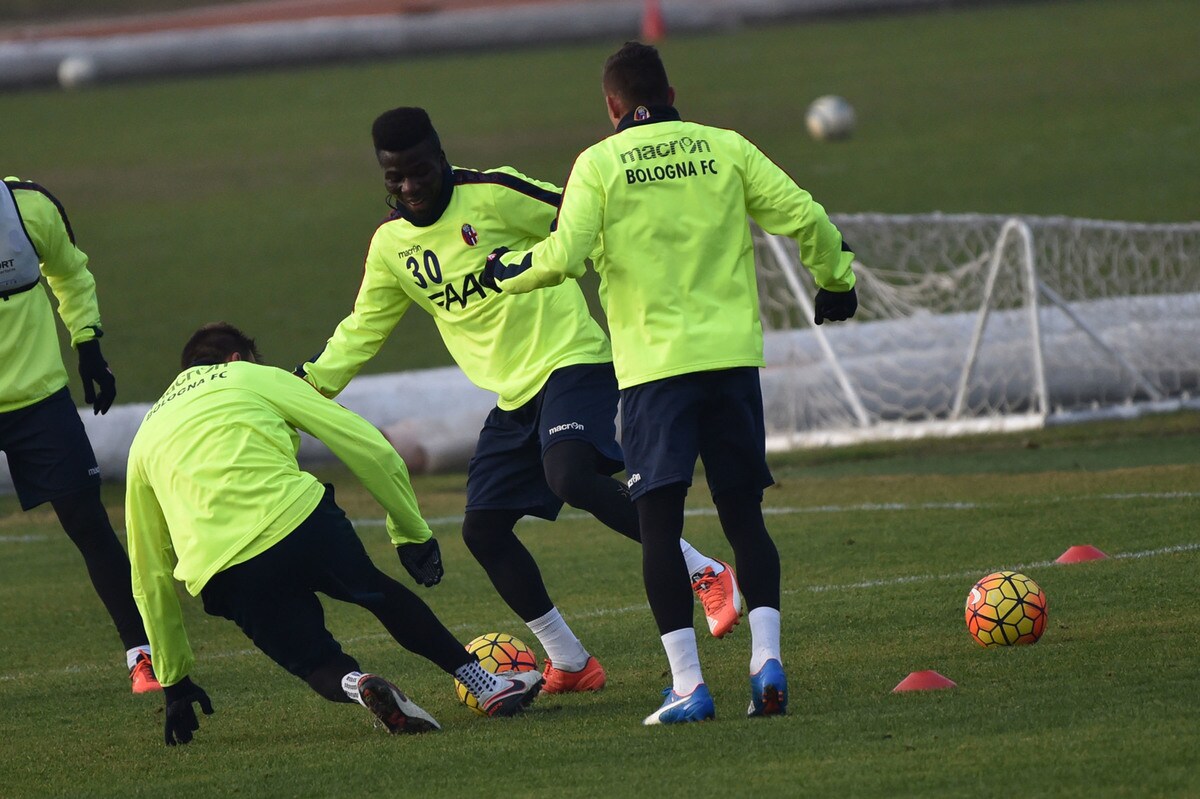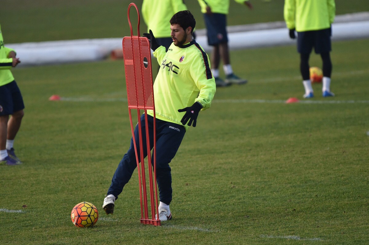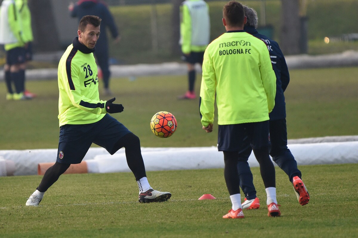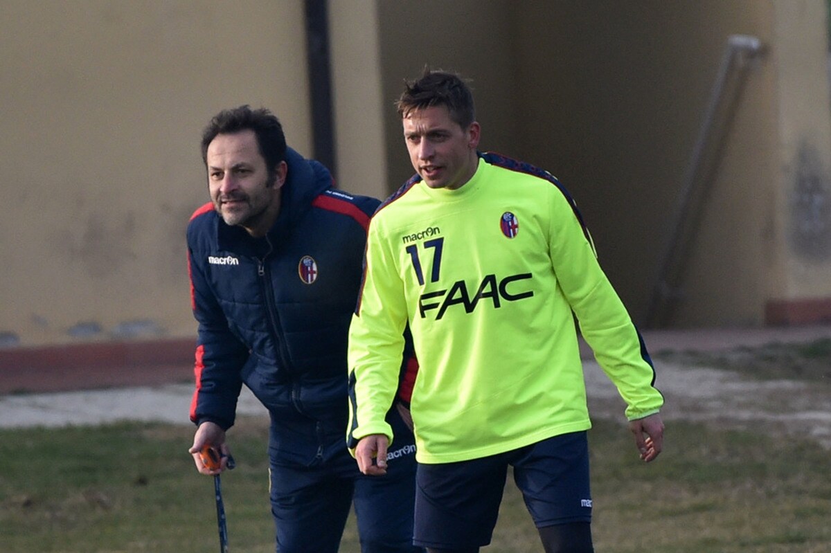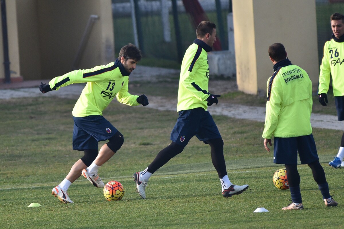 Il tecnico rossoblù gioca e si diverte con i suoi ragazzi durante l'allenamento pomeridiano: tanti spettatori bolognesi presenti