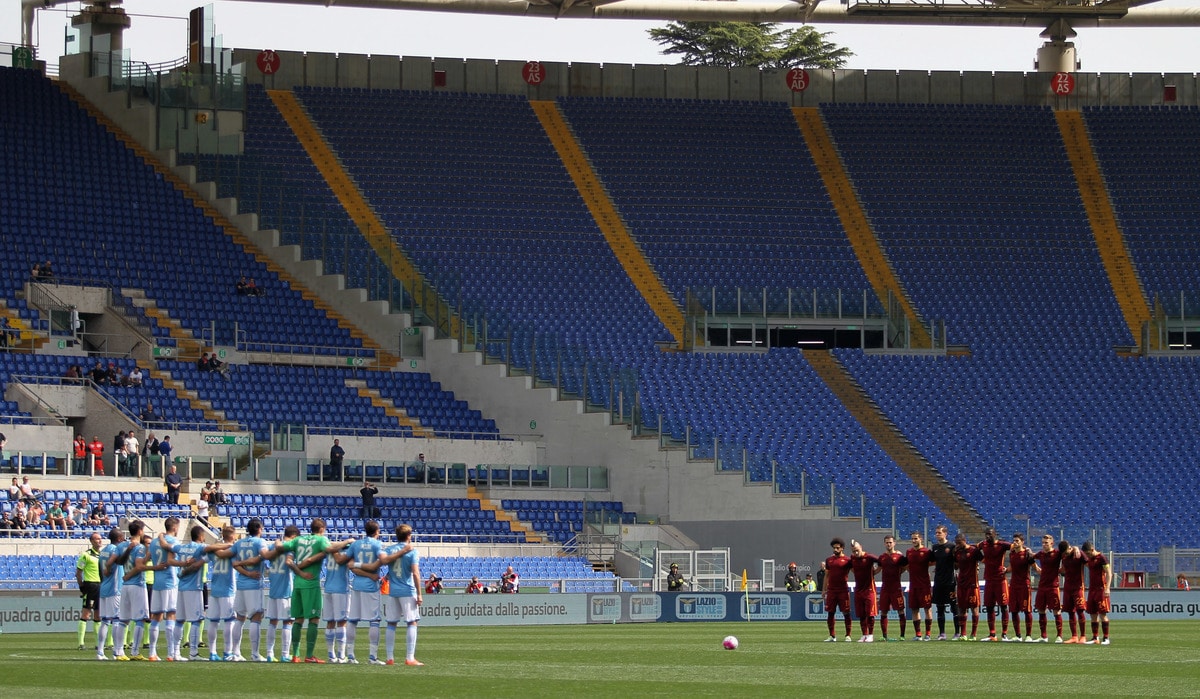 Ecco le immagini dello Stadio Olimpico semivuoto durante la sfida tra giallorossi e biancocelesti