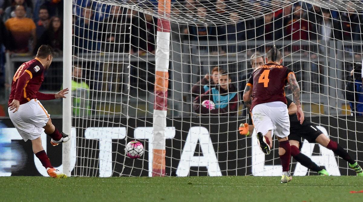 Il capitano giallorosso segna due gol in due minuti: la squadra di Spalletti torna a -5 dal Napoli e allunga sull'Inter