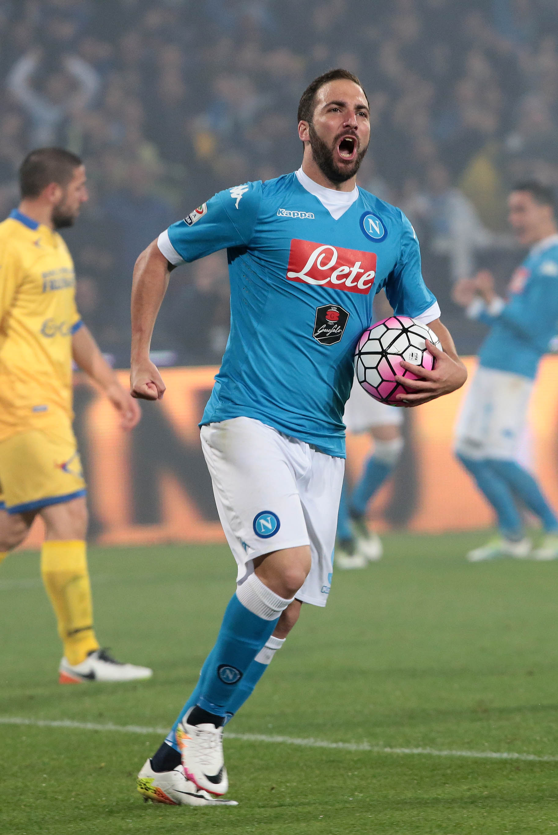 Napoli-Frosinone 4-0, Higuain tripletta e record, 36 gol in A: superato Nordahl
