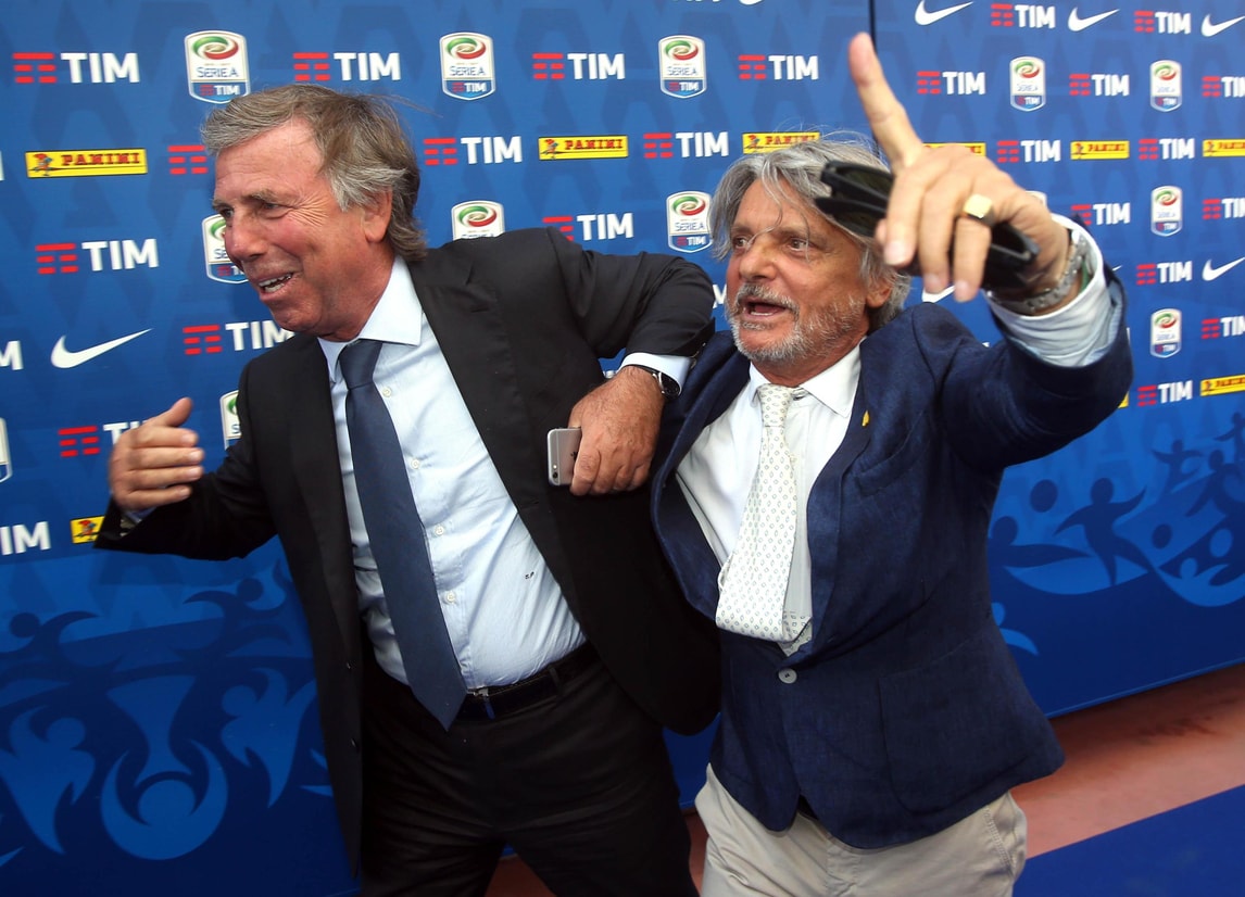Le immagini del presidente della Sampdoria e quello del Genoa a Milano in occasione dalla presentazione del calendario della nuova stagione di Serie A