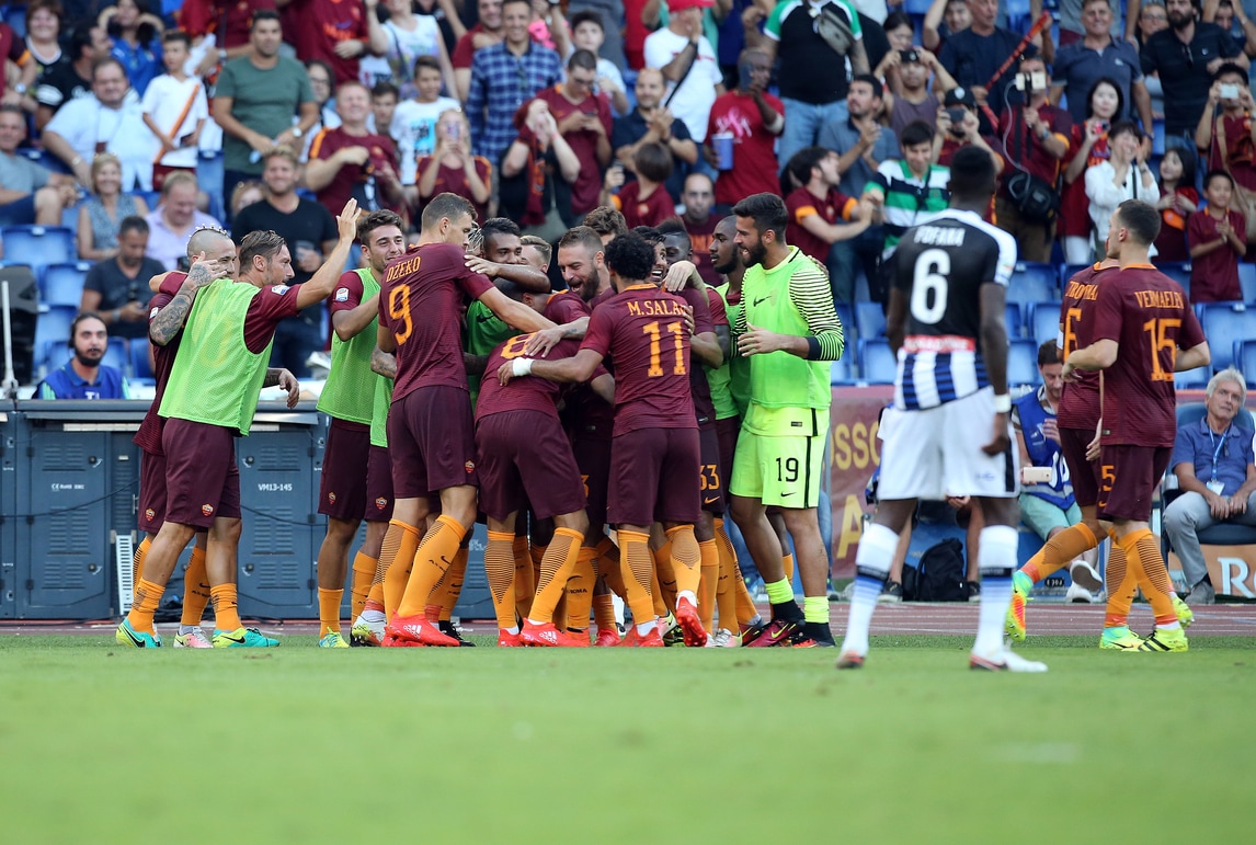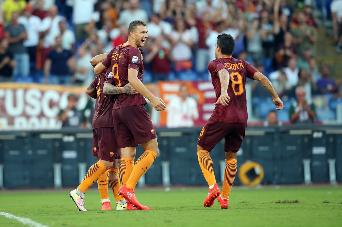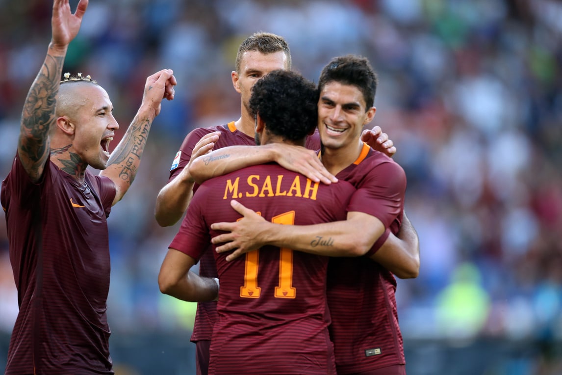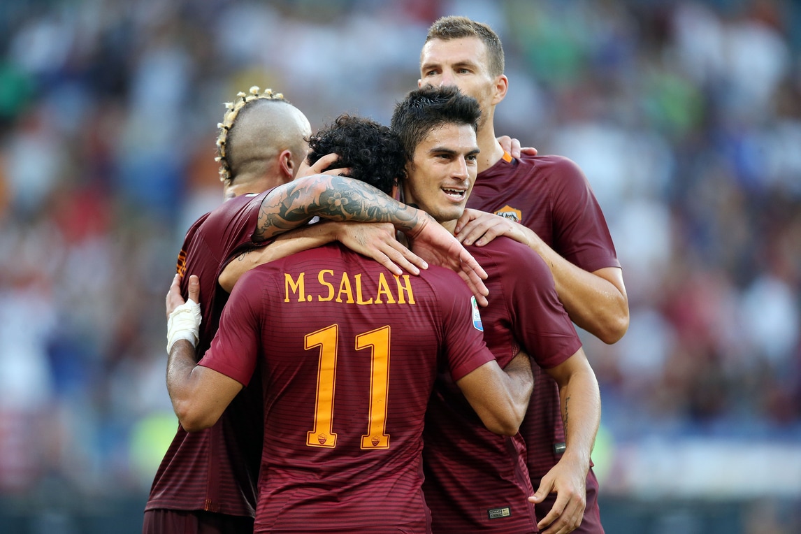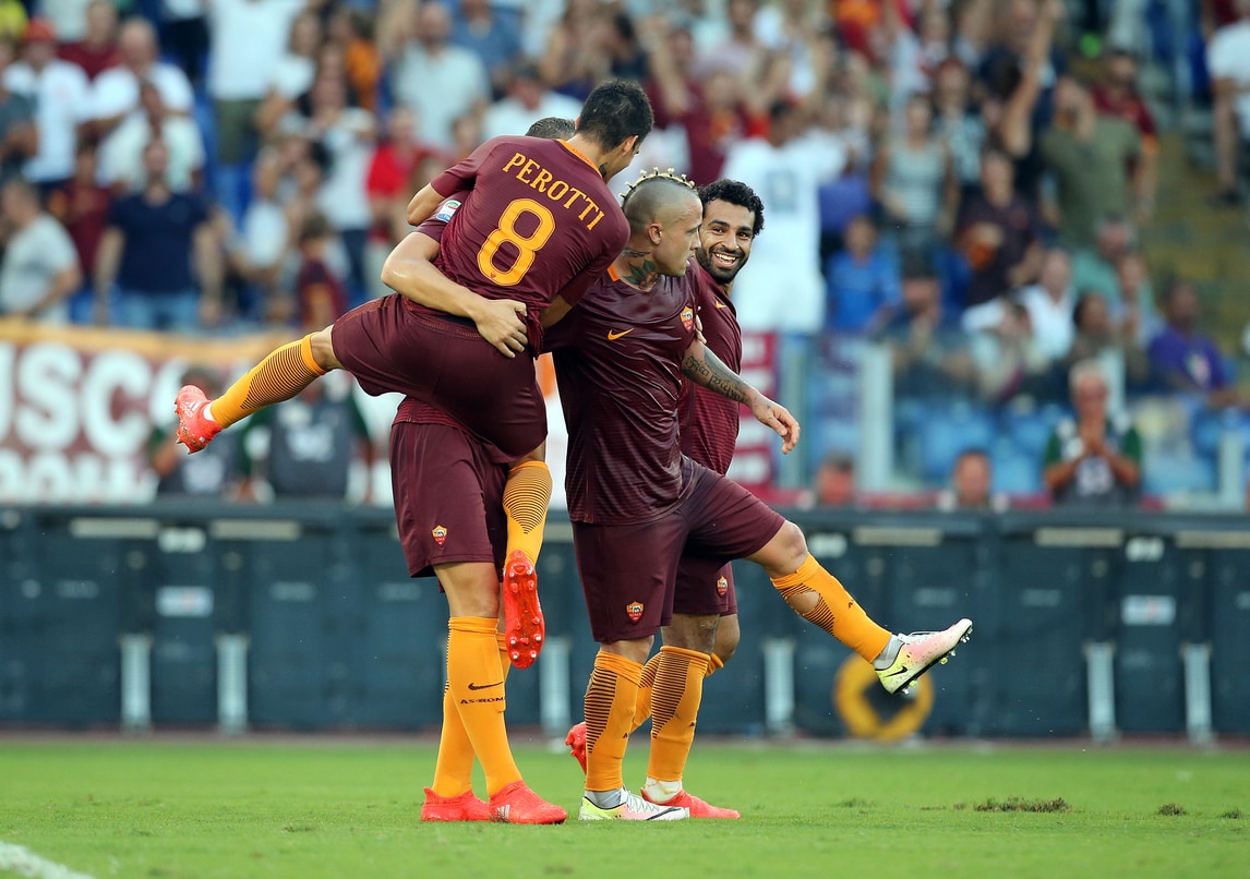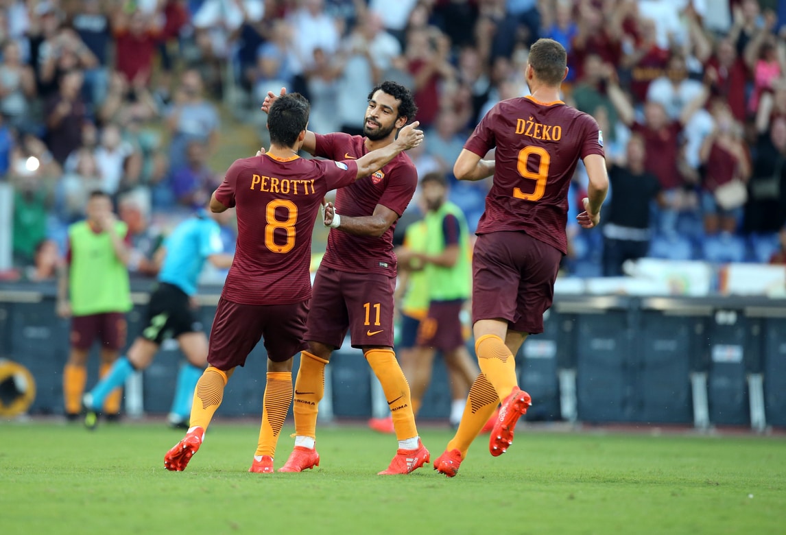 Dopo un primo tempo fiacco, la squadra di Spalletti conquista il match grazie ai due gol su rigore di Perotti, e alle reti di Dzeko e Salah