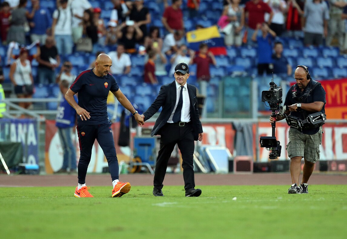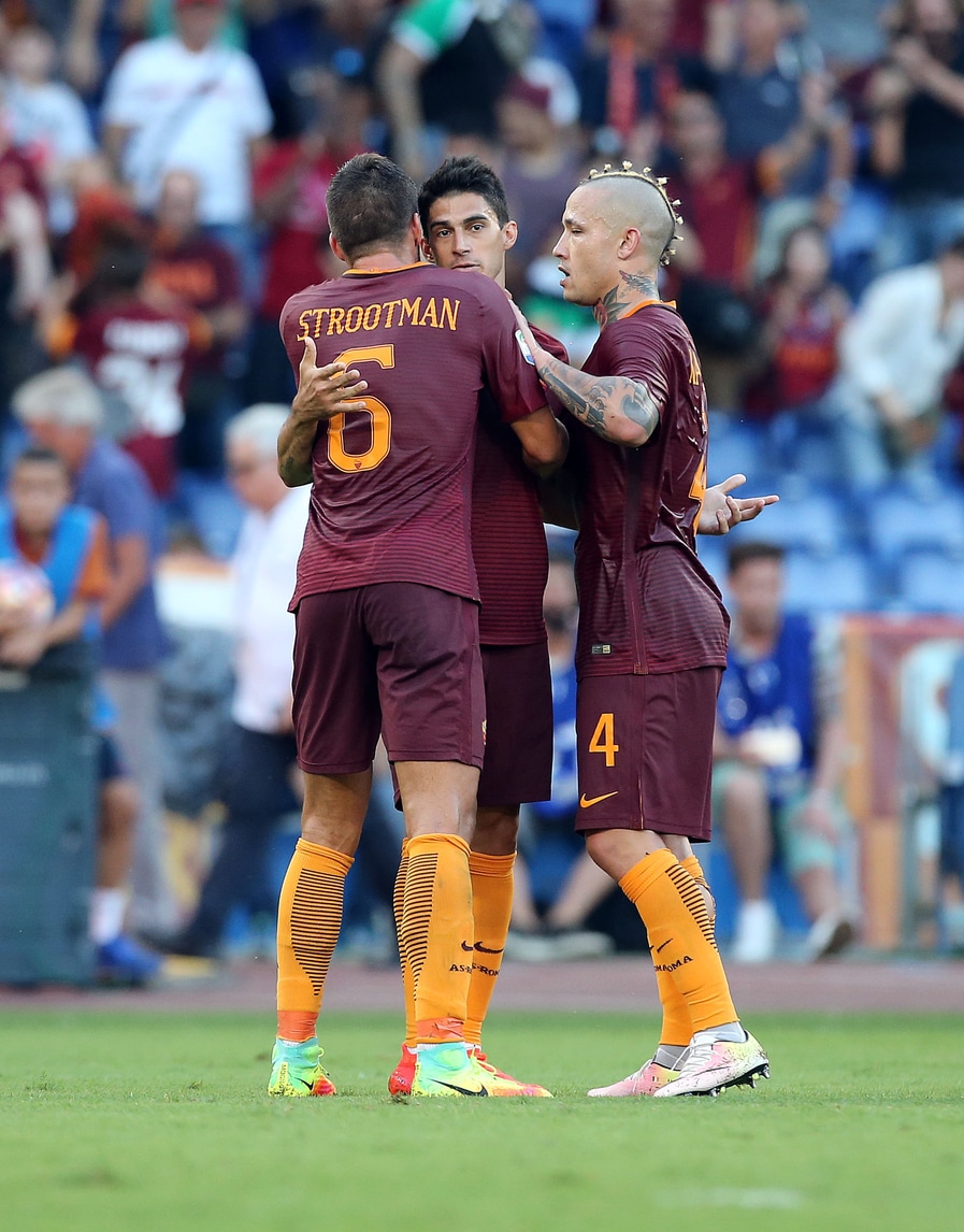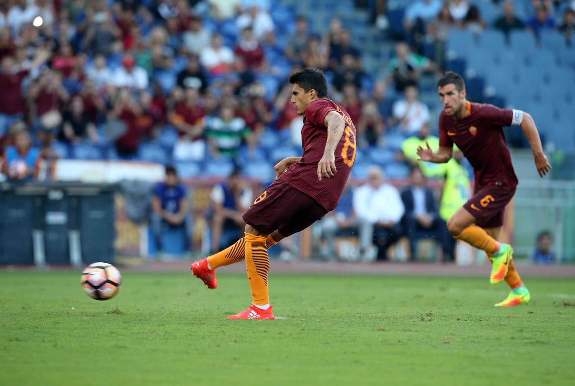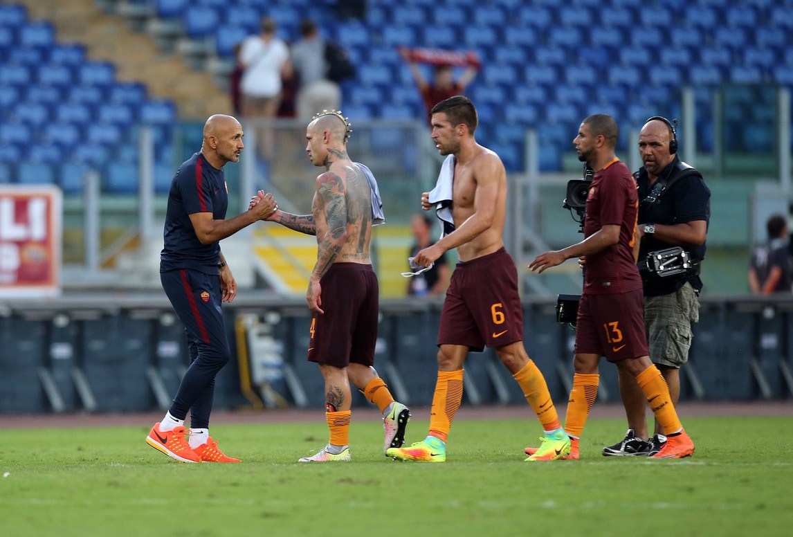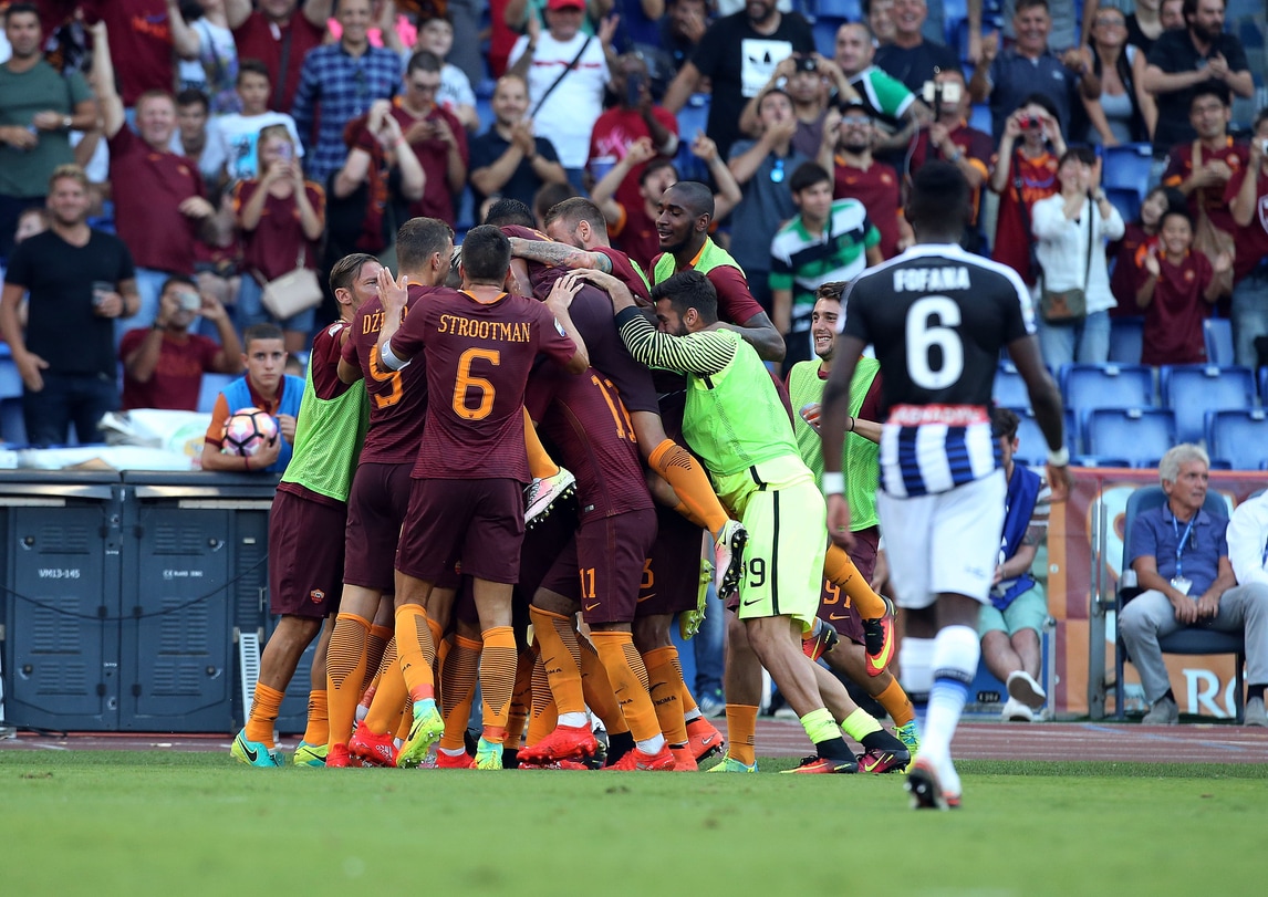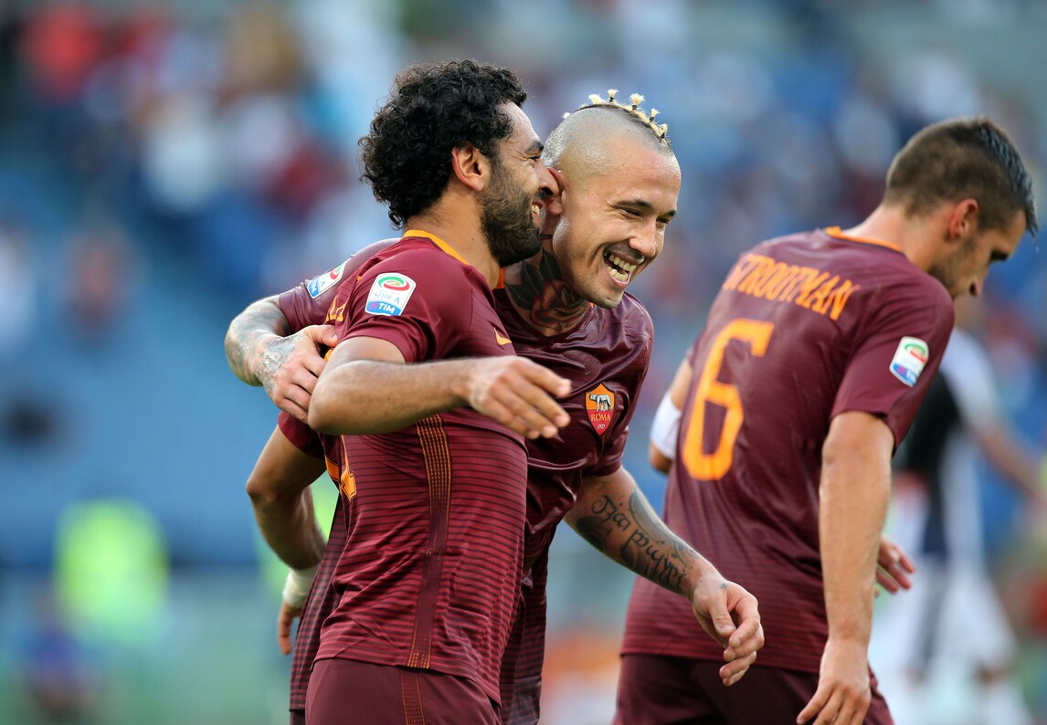 Dopo un primo tempo fiacco, la squadra di Spalletti conquista il match grazie ai due gol su rigore di Perotti, e alle reti di Dzeko e Salah
