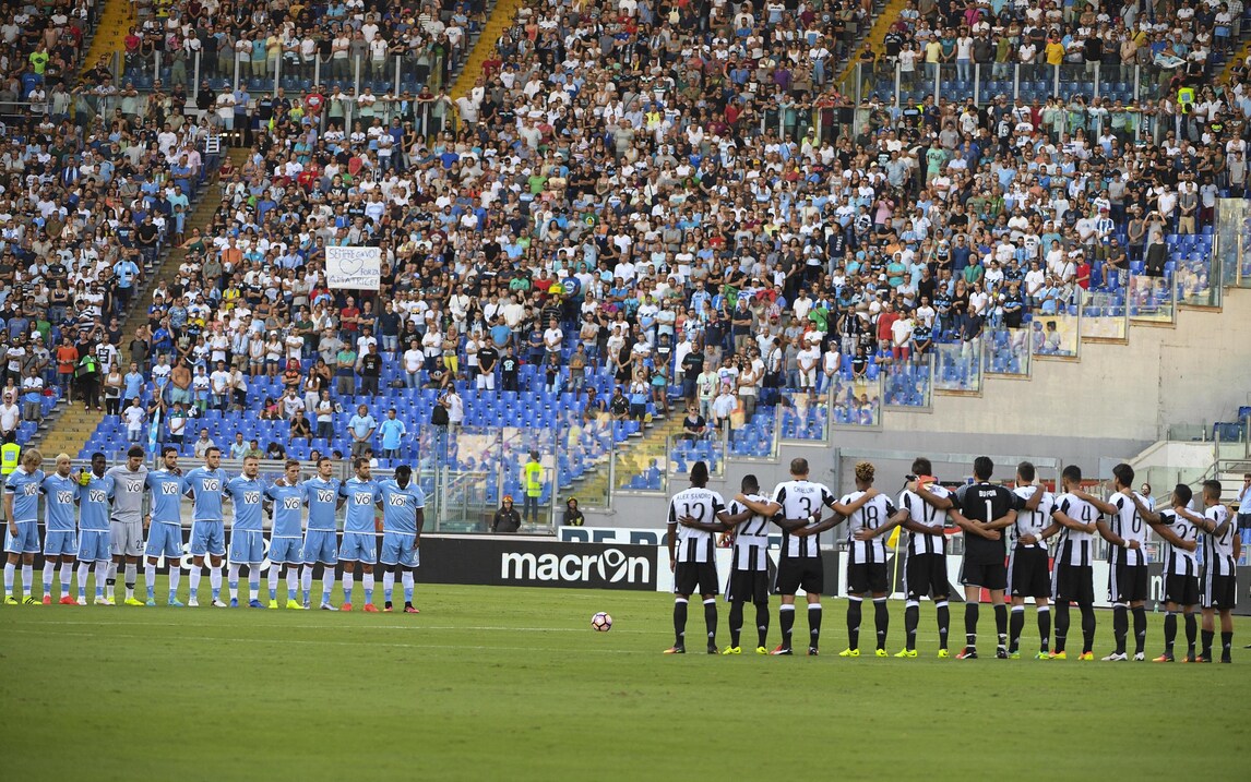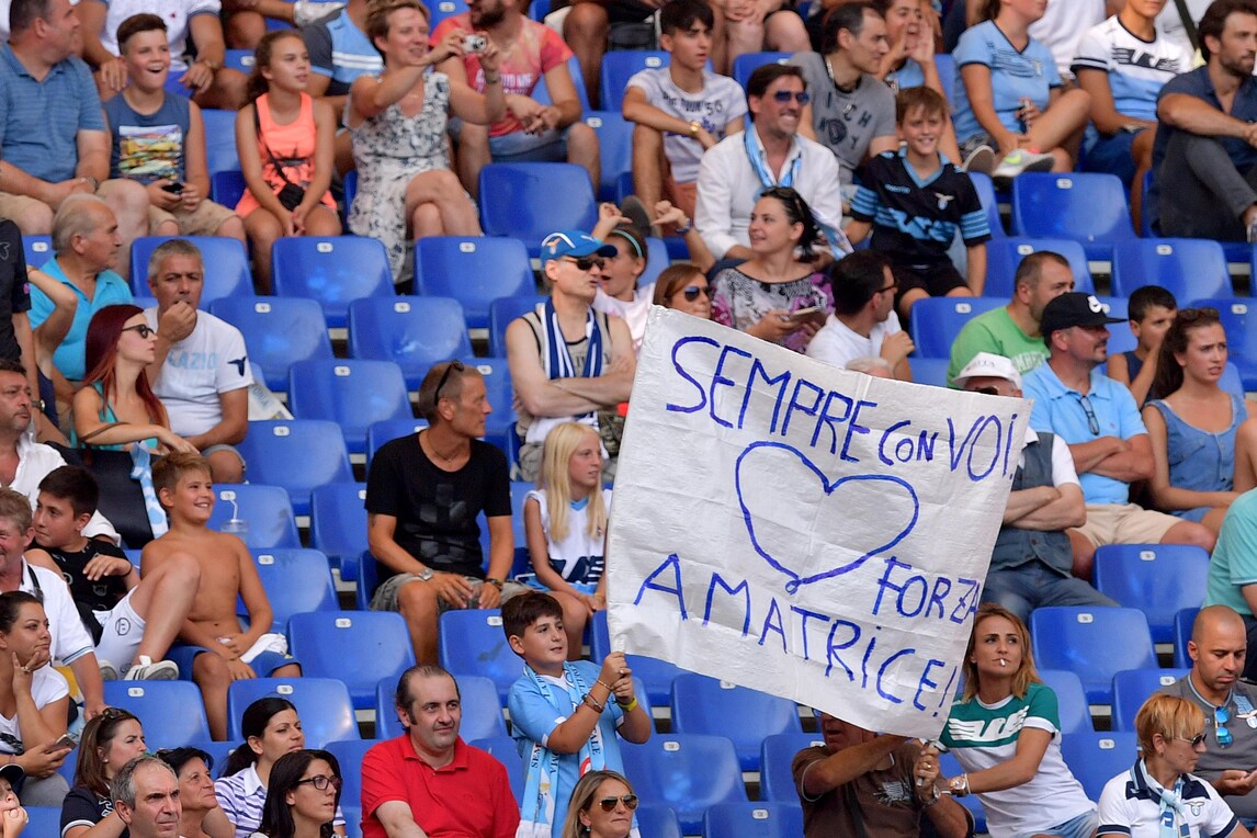 Ecco le immagini degli striscioni dello stadio Olimpico in memoria delle vittime del terremoto che ha colpito il centro Italia