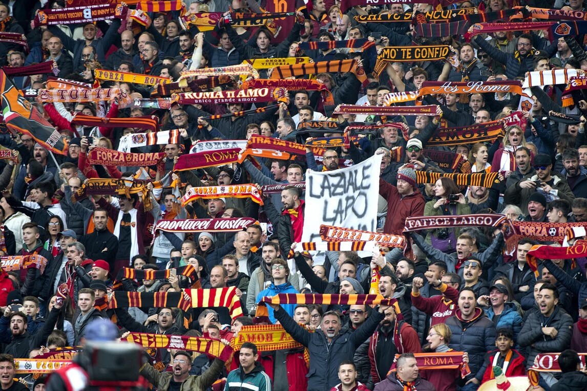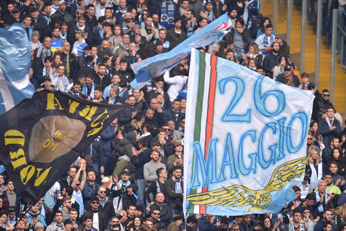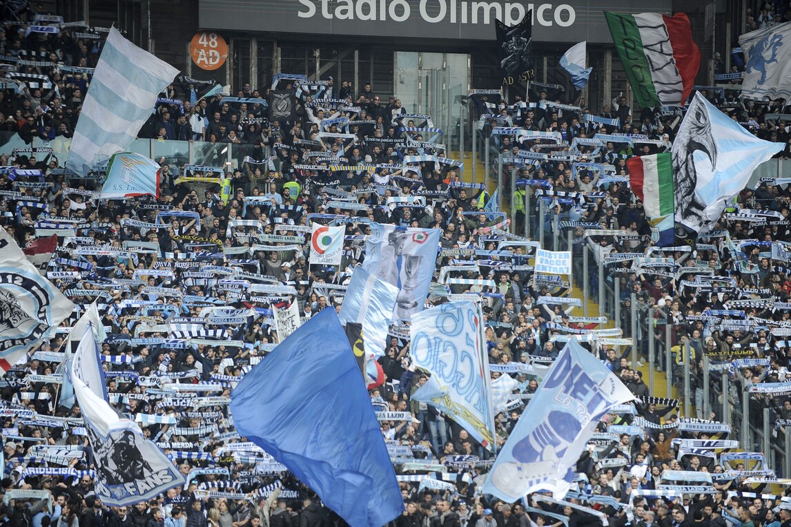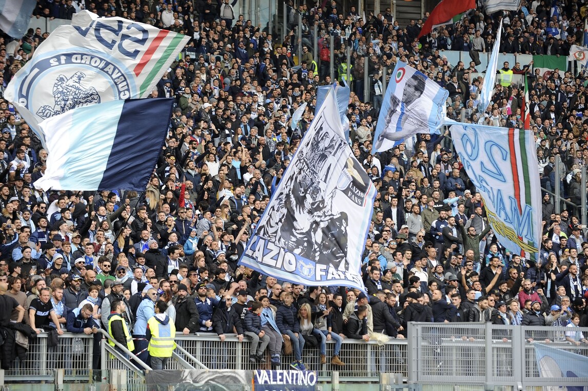 Due tifoserie contrapposte: i tifosi della Lazio riempiono la curva, a differenza di quelli della Roma che protestano contro le barriere