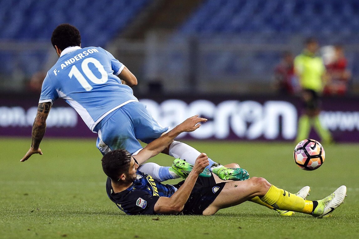 La Lazio finisce in 9 uomini, espulsi Lulic e Keita: in gol Eder e Andreolli, Inter in vantaggio grazie all'autogol di Hoedt