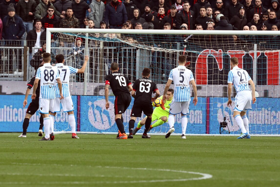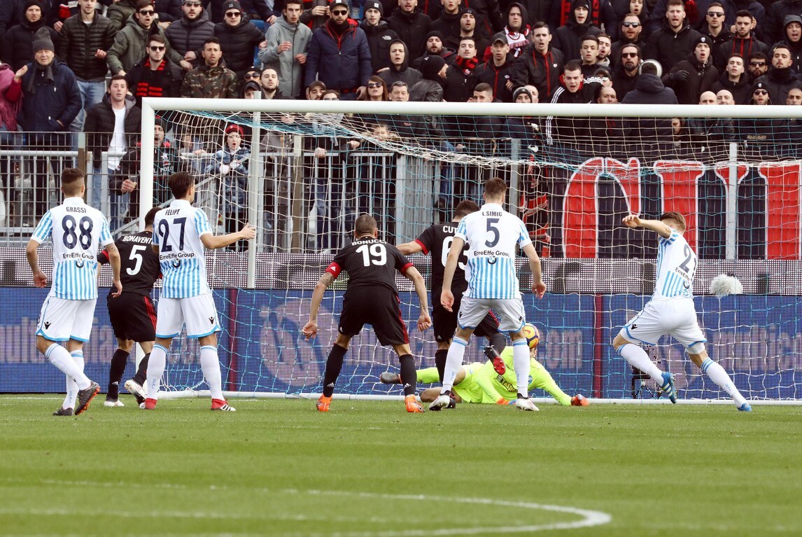 Allo stadio Mazza il Milan cala il poker alla Spal: due gol dell'attaccante originario di Como, le reti di Biglia (prima stagionale) e Borini (prima in campionato). I rossoneri, imbattutti da 6 turni di campionato, salgono a quota 38 punti