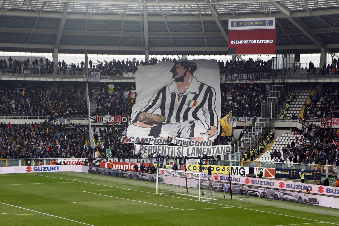 Prima della partita coreografia in Curva Maratona. Risponde anche lo spicchio bianconero