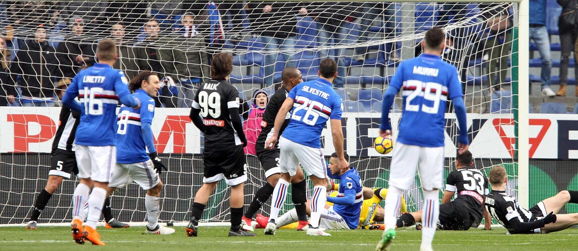 La squadra di Giampaolo supera i bianconeri di Oddo: sblocca Silvestre, poi eurogol di Zapata. Nel finale il difensore argentino segna nella propria porta: blucerchiati in zona Europa