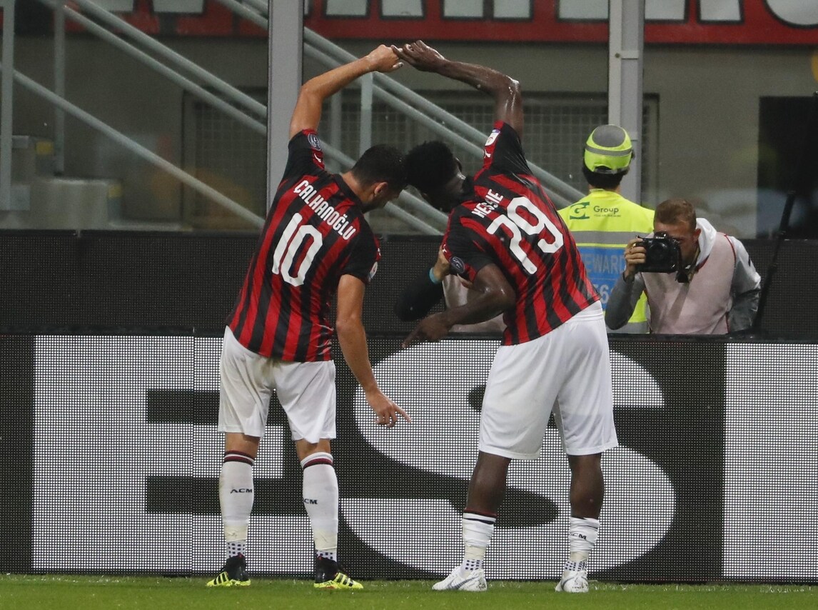 Acceso confronto tra il centravanti e il difensore dopo la rete del momentaneo 1-0 rossonero