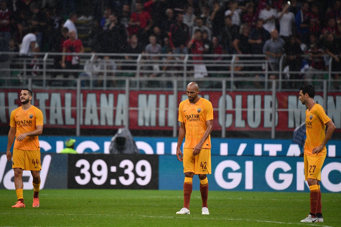 Milan-Roma: discussione Dzeko-Fazio dopo il gol di Kessie