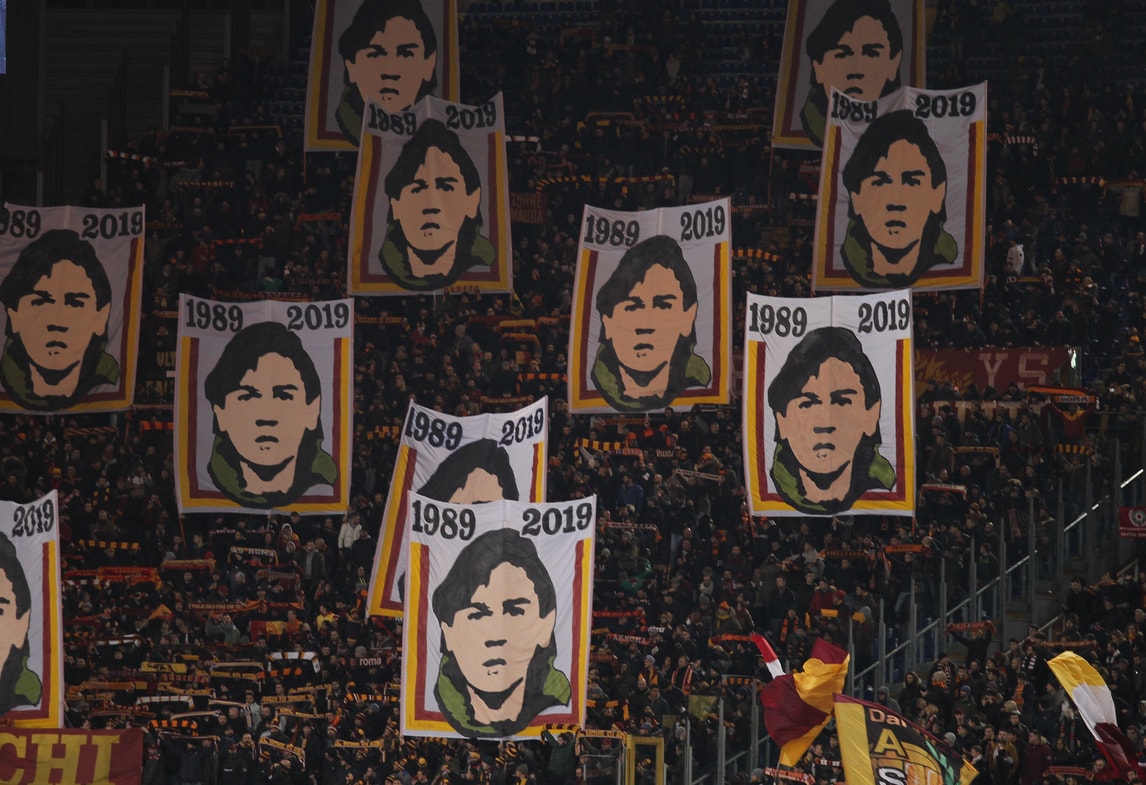 La parte più calda della tifoseria giallorossa ha voluto ricordare il ragazzo ucciso a soli 18 anni nel 1989 a Milano, poi in contestazione ha abbandonato lo stadio
