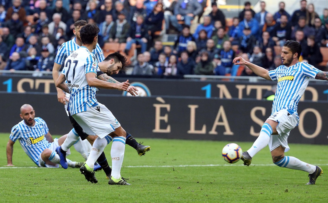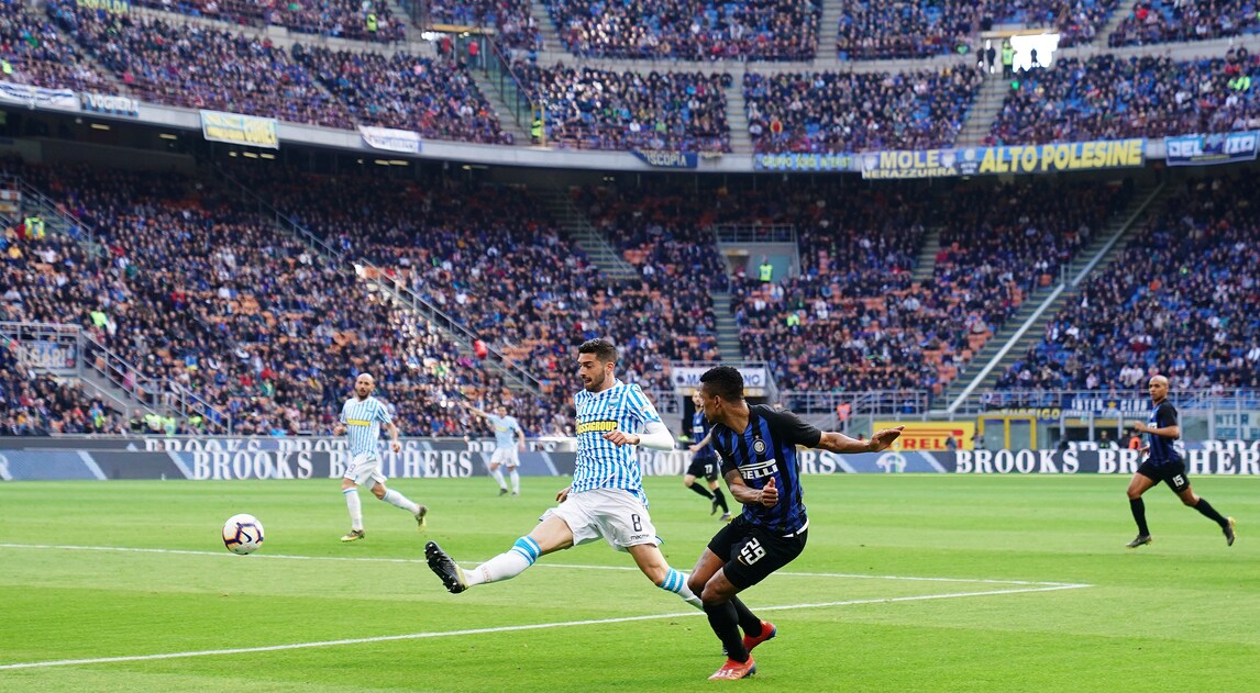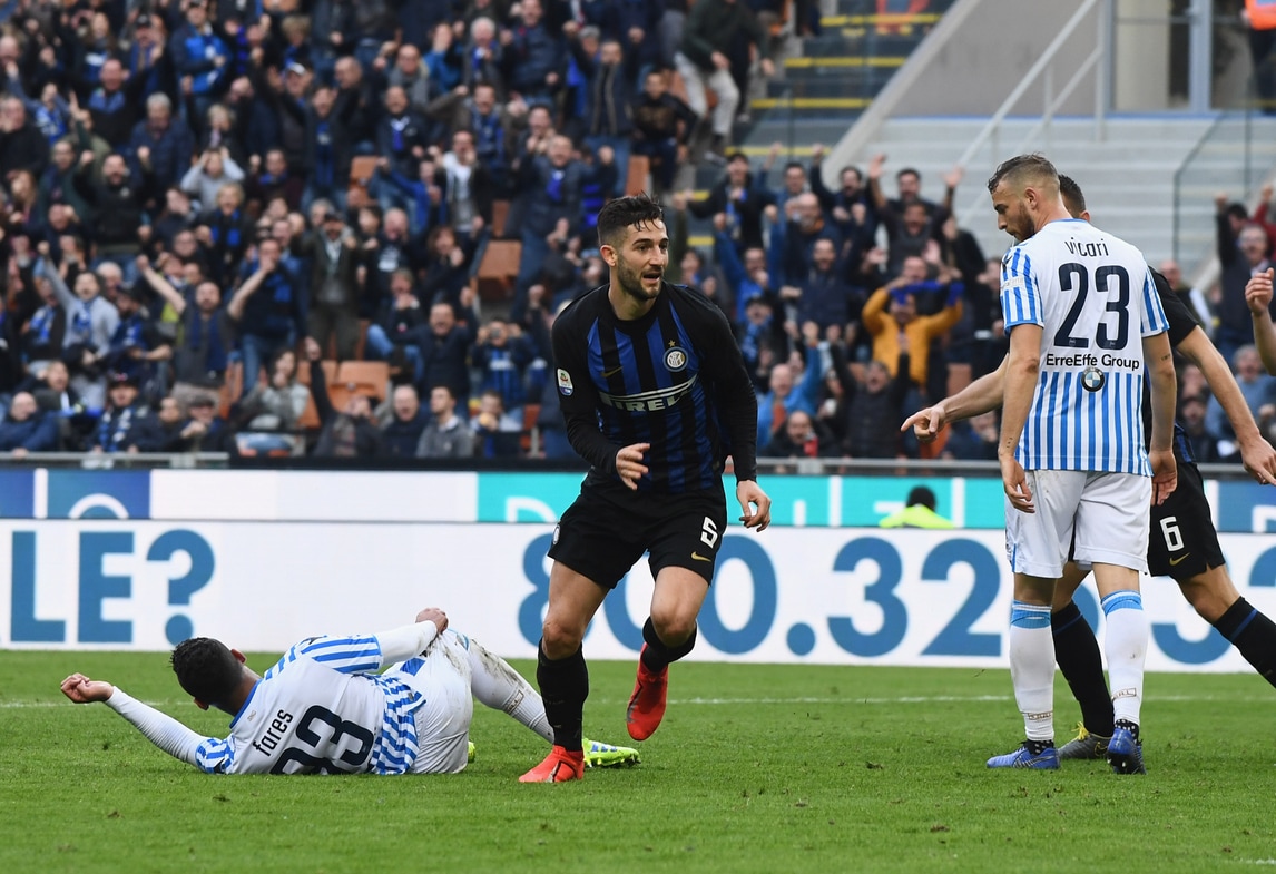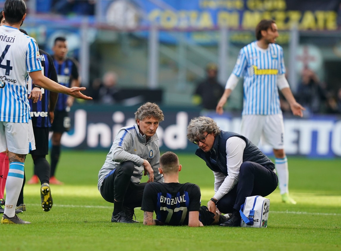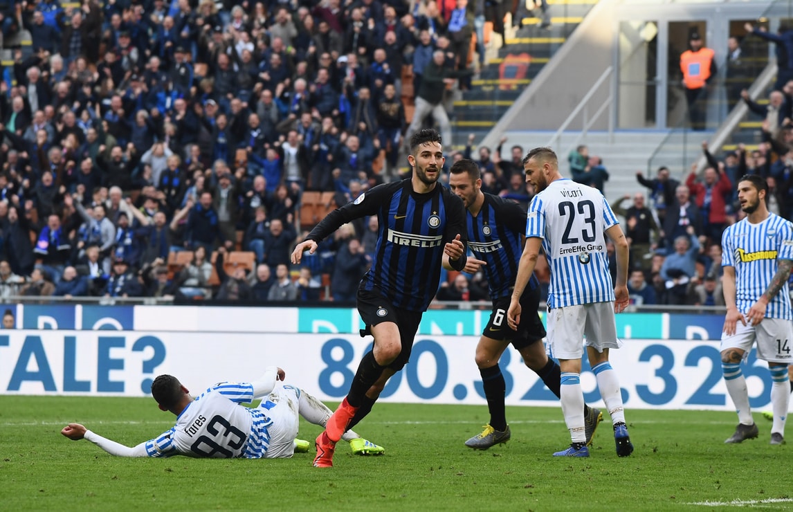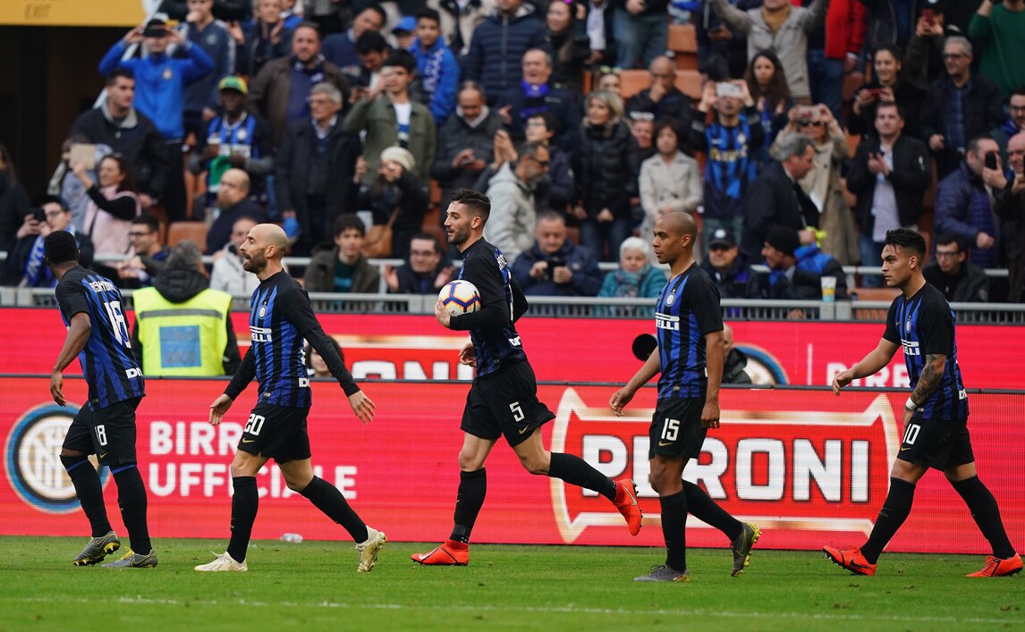 Annullato un gol a Lautaro con l'aiuto del VAR, confermata invece la rete del vantaggio dell'ex Sassuolo. Sospetta frattura al naso per Miranda, si fa male anche Brozovic